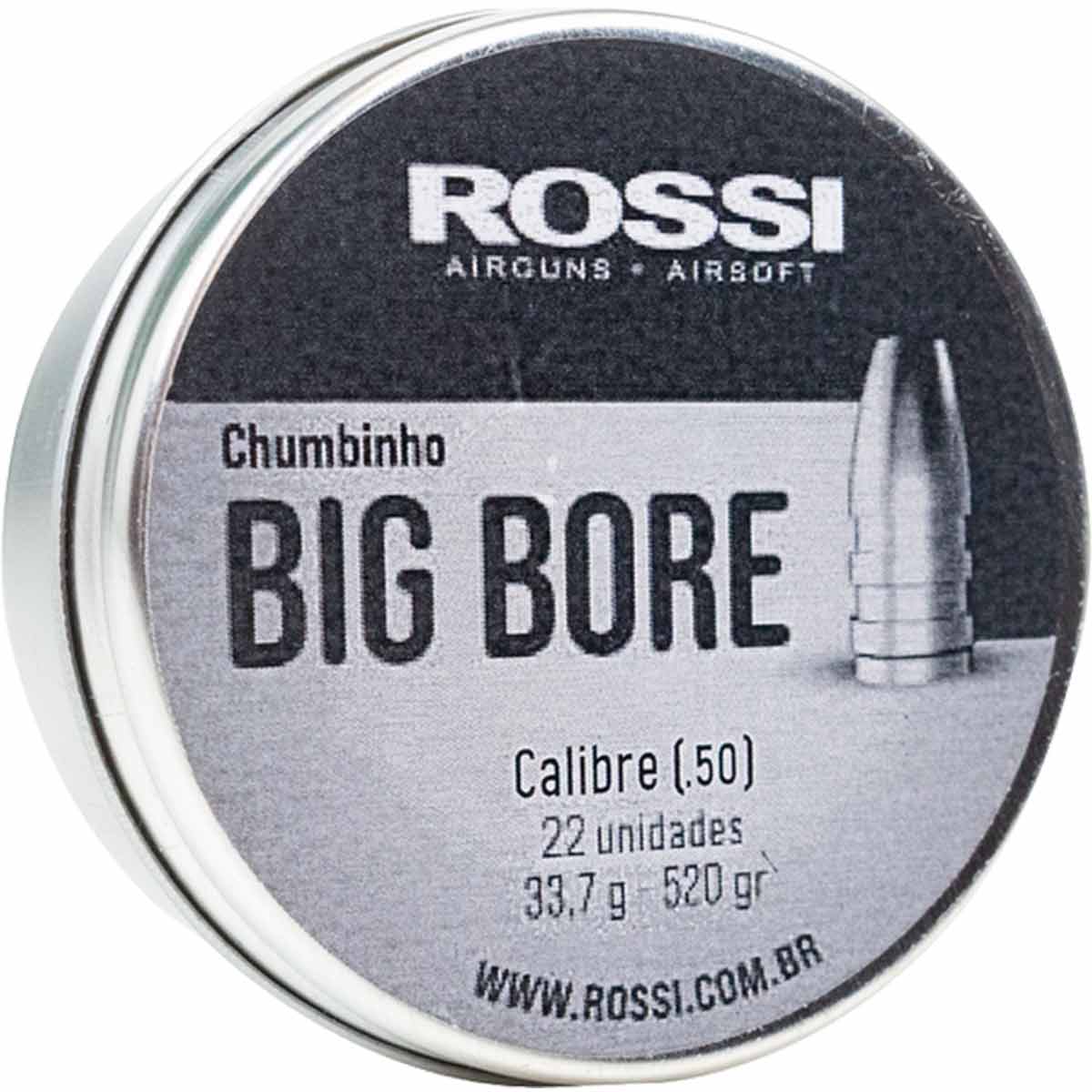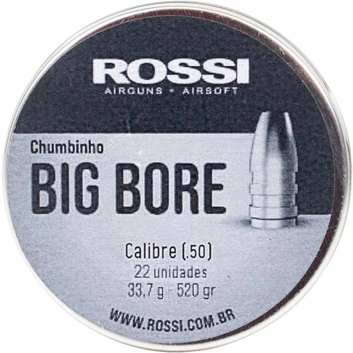 1x Lata de Chumbinho Rossi Big Bore 12.7mm (.50) com 22 unidades
