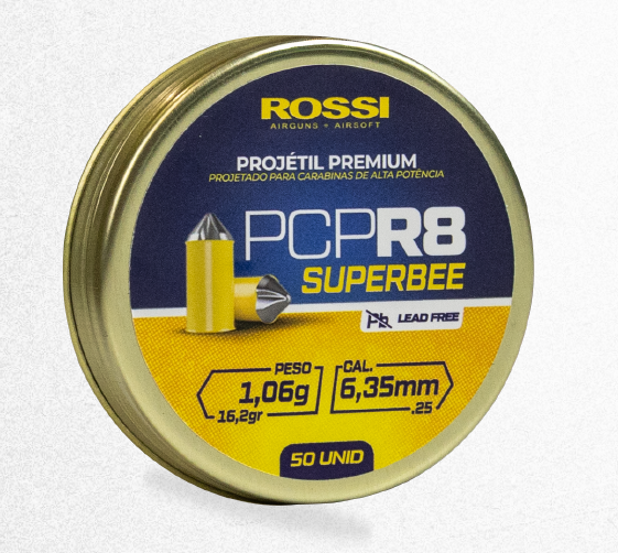 1x Lata com 50 unidades de Chumbinho Rossi PCP R8 Superbee 6.35mm