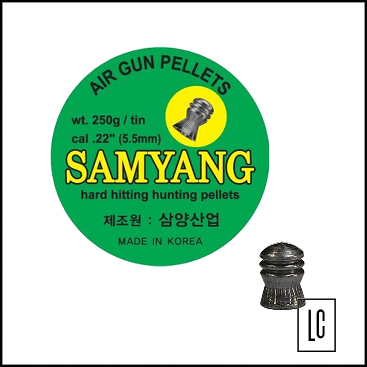Chumbinho Samyang cal. 5.5 mm, formato arredondado - domo, tiro muito potente.