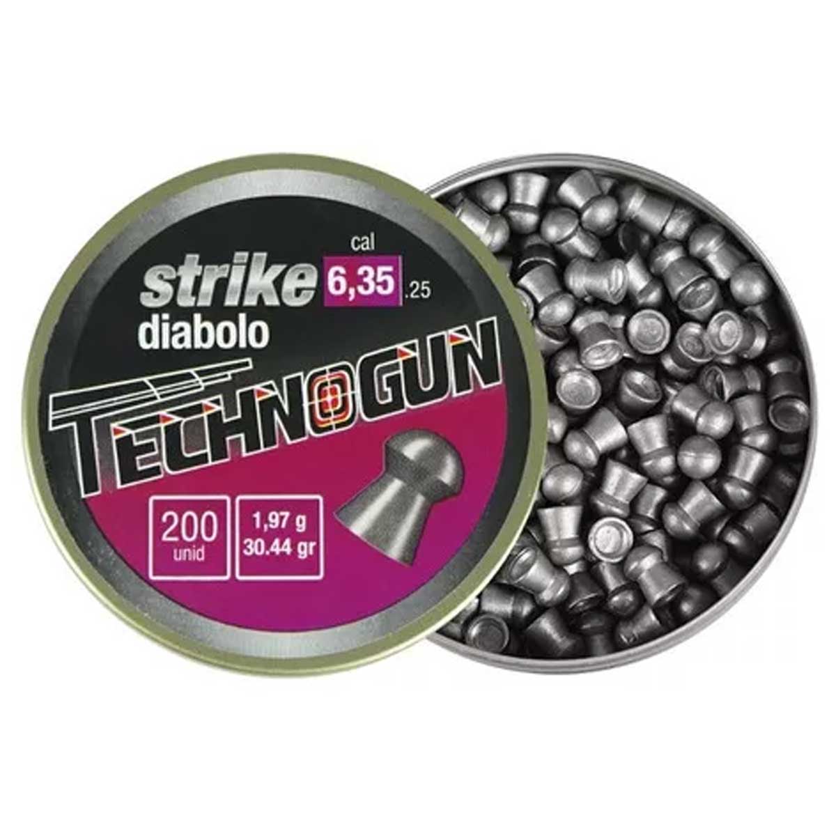 A embalagem com 200 unidades vem em lata rosqueável, fácil de manusear e transportar, oferecendo praticidade no dia a dia. O Chumbinho Technogun Strike Diabolo 6.35mm entrega precisão, impacto e excelente desempenho com ótimo custo-benefício para diferentes tipos de uso.