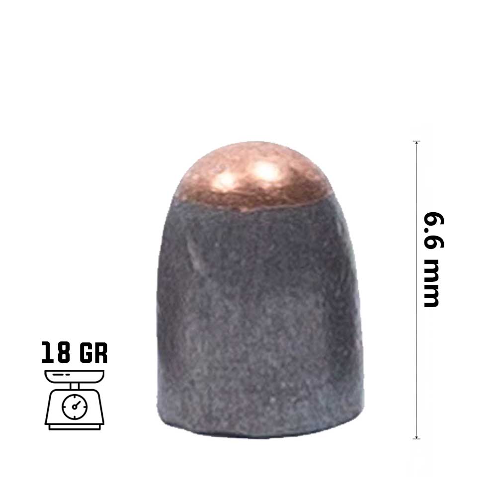 Além da perfuração acentuada, seu formato também favorece a expansão do projétil e a projeção da esfera metálica no momento do impacto, tornando-o especialmente eficaz contra alvos mais densos. O corpo em chumbo garante estabilidade durante o voo e precisão em distâncias médias e longas.