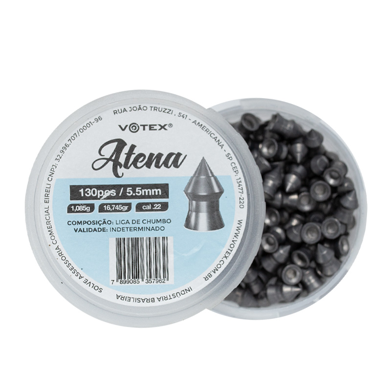CHUMBINHO 5.5 MM VOTEX ATENA 5.5 MM (.22) - 130 UNIDADES