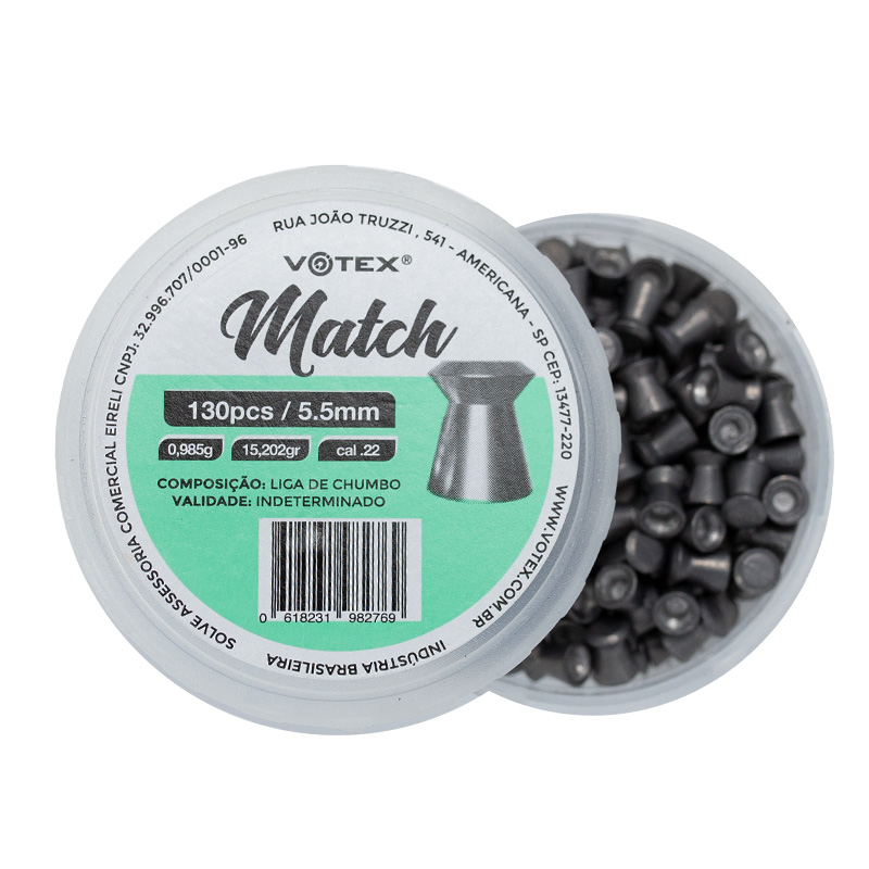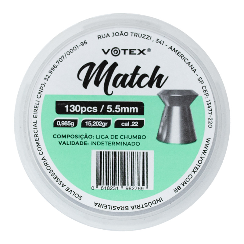 Chumbinhos Match da Votex, são munições para armas de pressão de alta qualidade e padrão de acabamento com excelente custo-benefício.