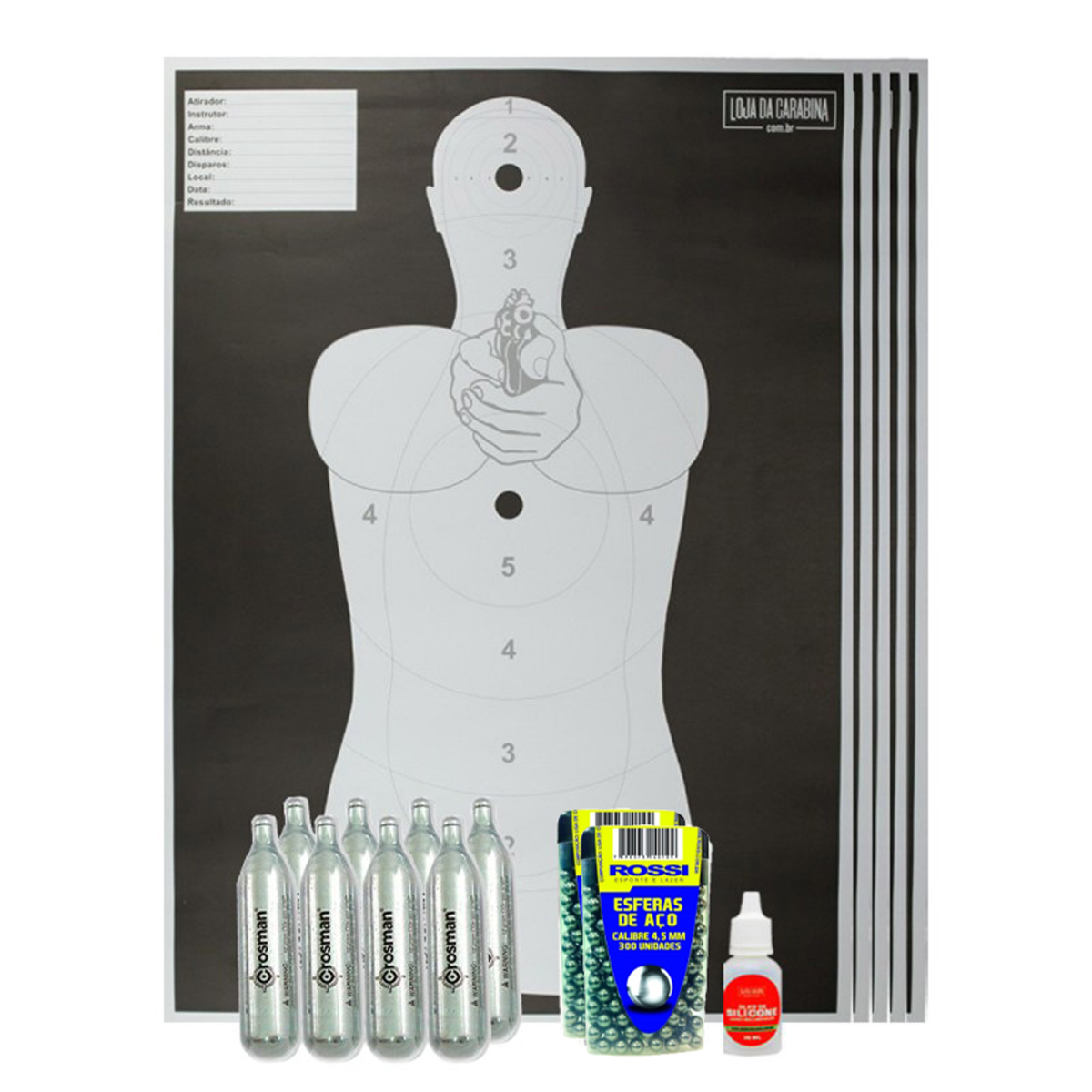 CILINDRO CO2 12G + ALVO + ESFERAS DE AÇO + SILICONE