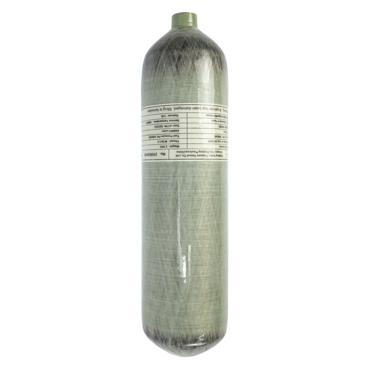 Cilindro PCP 300Bar 3 LITROS De Fibra de Carbono - Características: