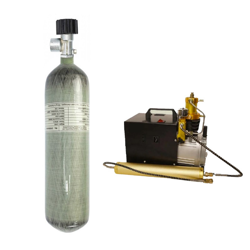 CILINDRO SCUBA PCP 300 BAR + COMPRESSOR PORTÁTIL PARA PCP 110V