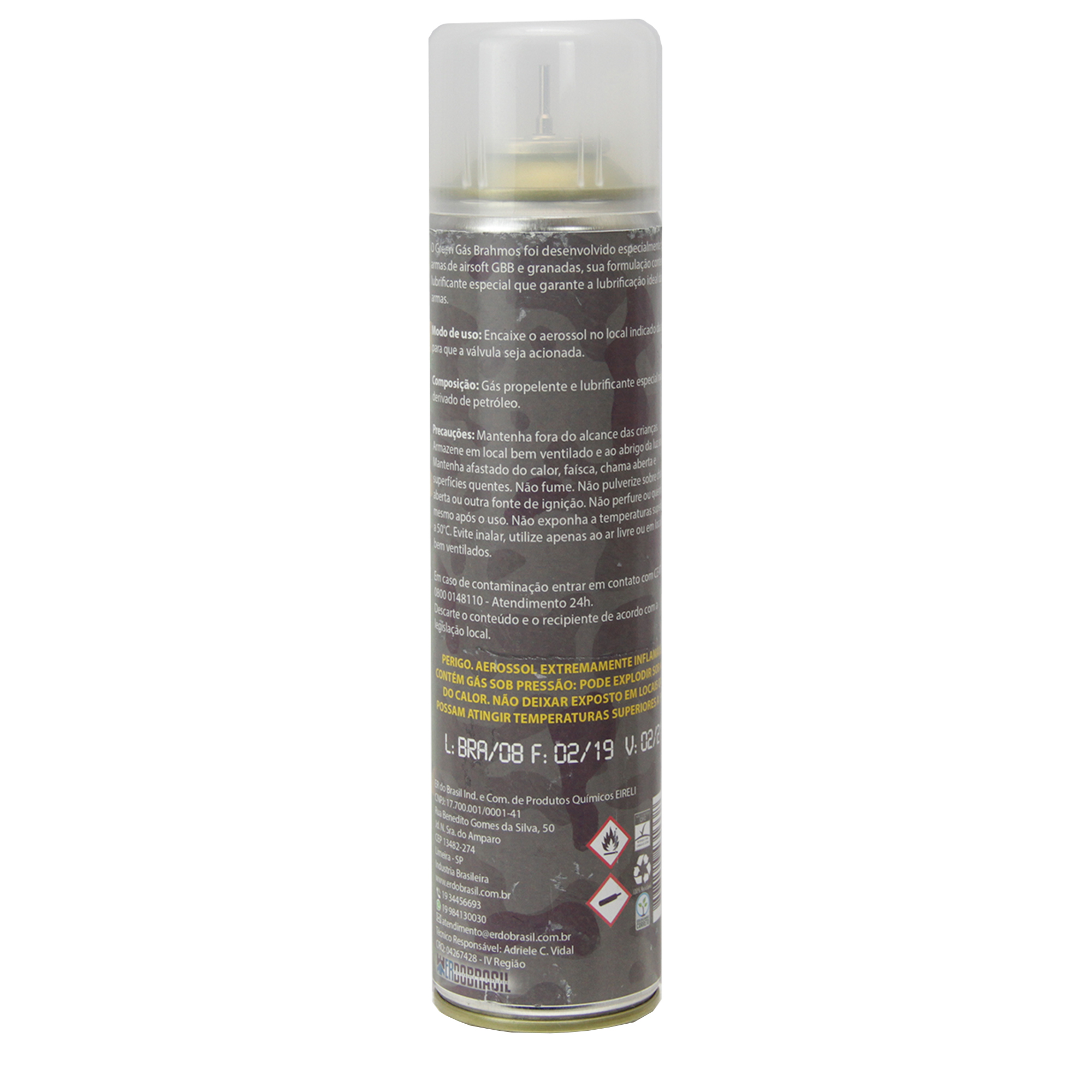 Composição: Gás Propelente e lubrificante especial não derivado do petróleo.