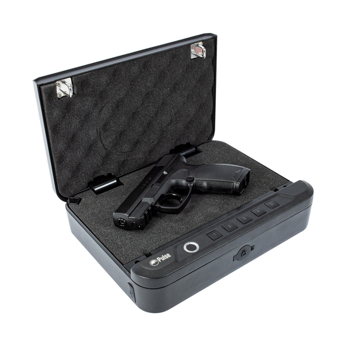 Mantenha sua arma de fogo segura e com alta proteção onde você for com esse Cofre portátil All In One fabricado pela Pulse.