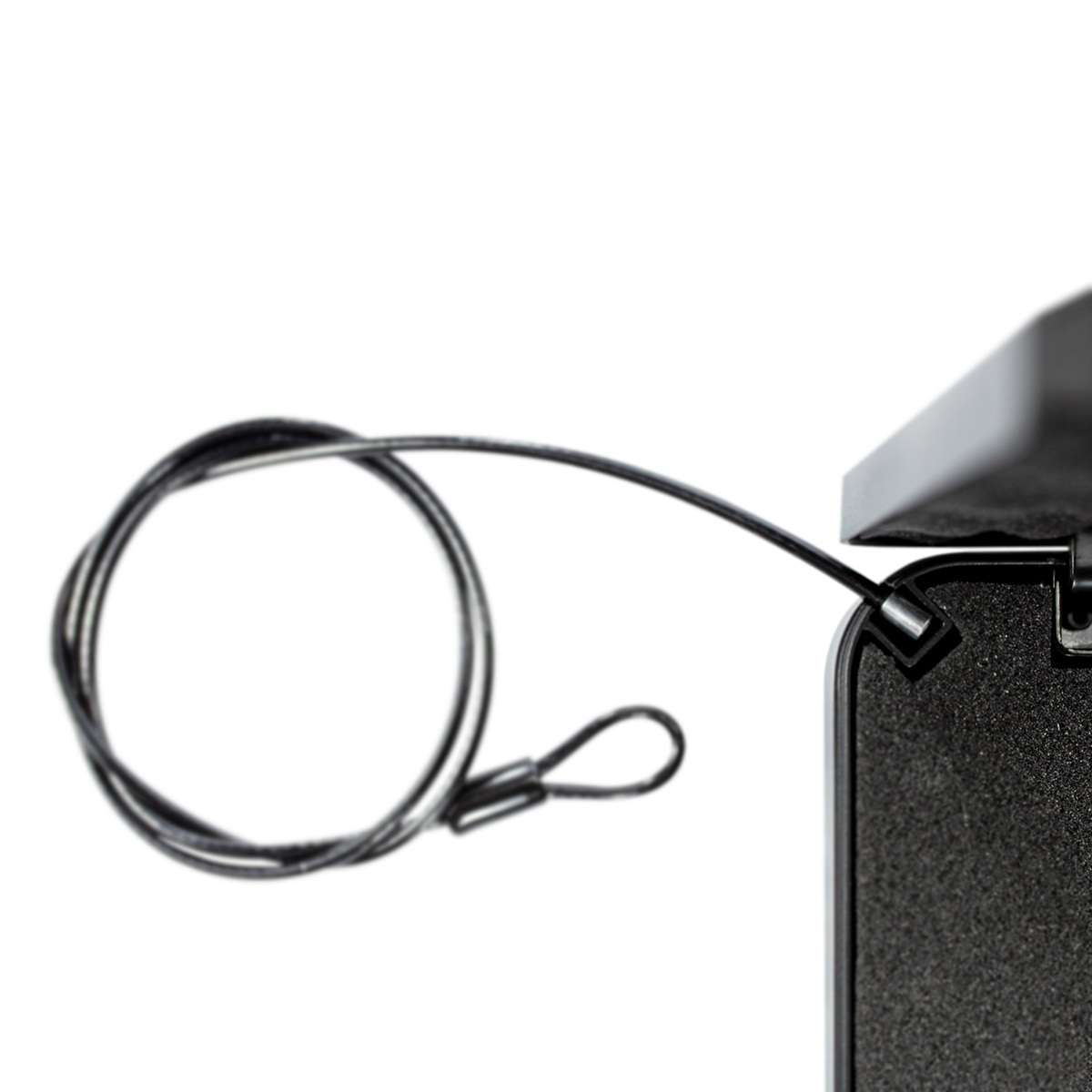 Para aumentar ainda mais a segurança, acompanha cabo antifurto em aço.