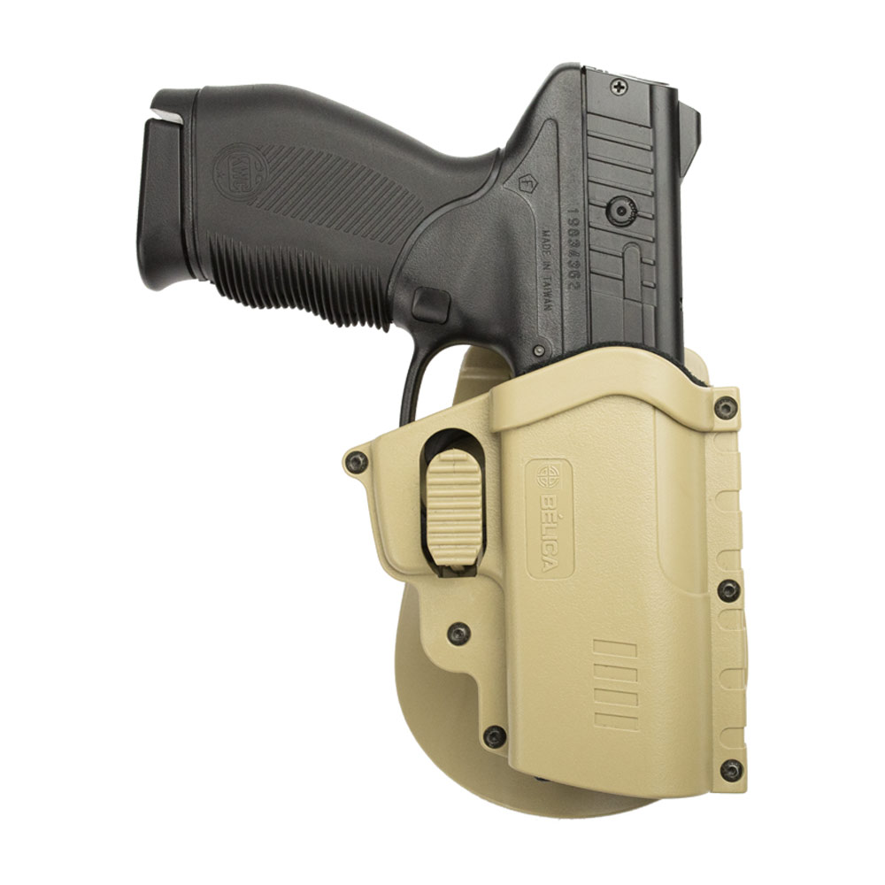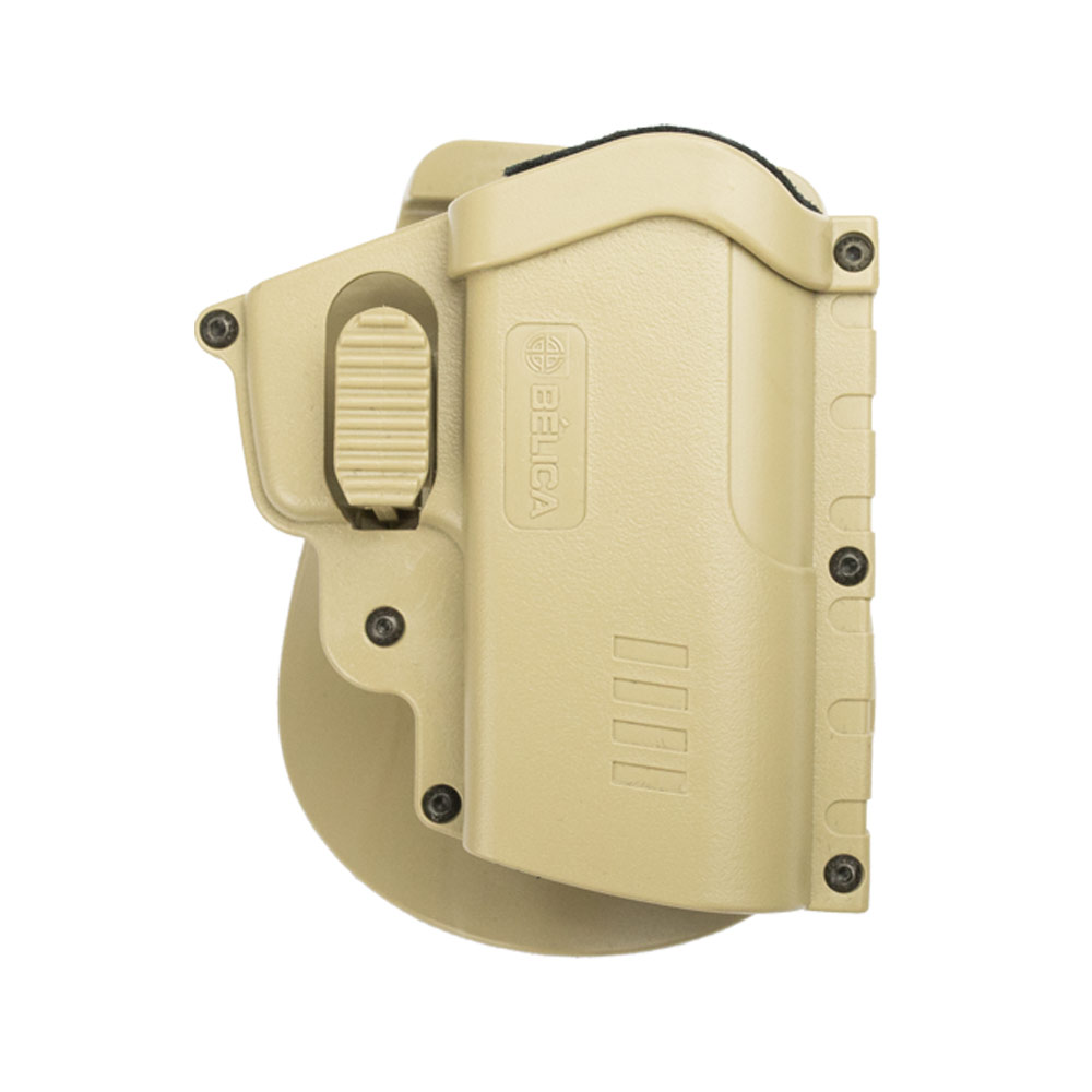 Eagle é um Coldre Rígido para Pistolas Taurus e Beretta M9 fabricado pela Bélica com adaptador Paddle para cintura. Sua construção é em polímero e ainda possui revestimento interno em couro, que torna mais seguro para utilizar a sua pistola sem muito atrito interno entre sua arma e o coldre Eagle.