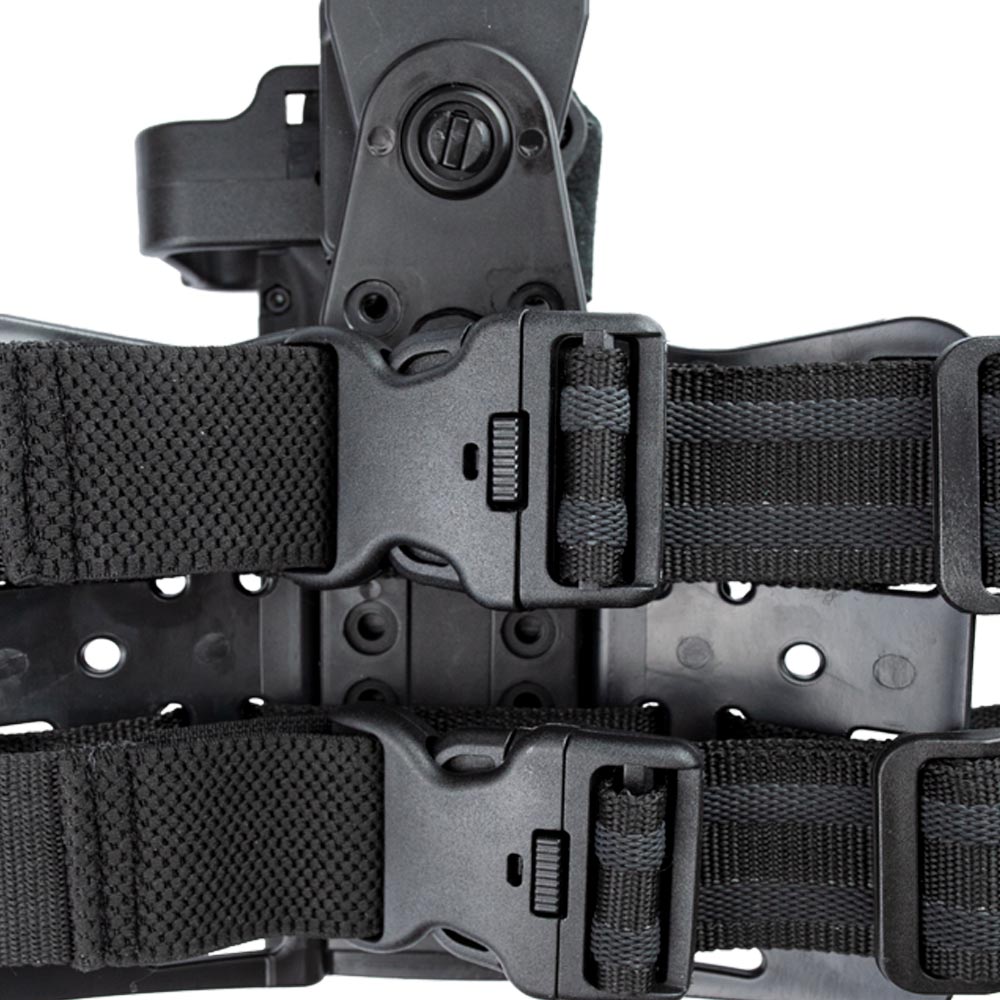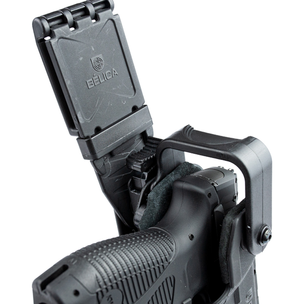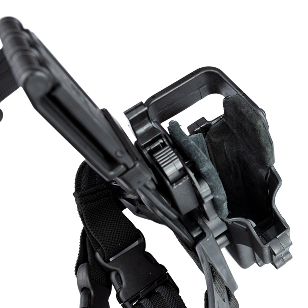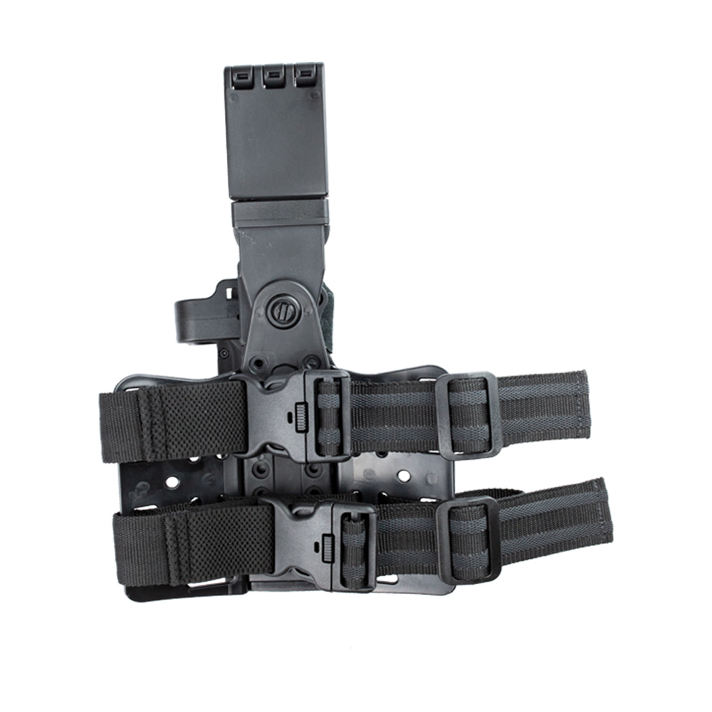 Coldre Bélica com plataforma de Perna, na cor preta, fabricado em polímero de alta densidade.