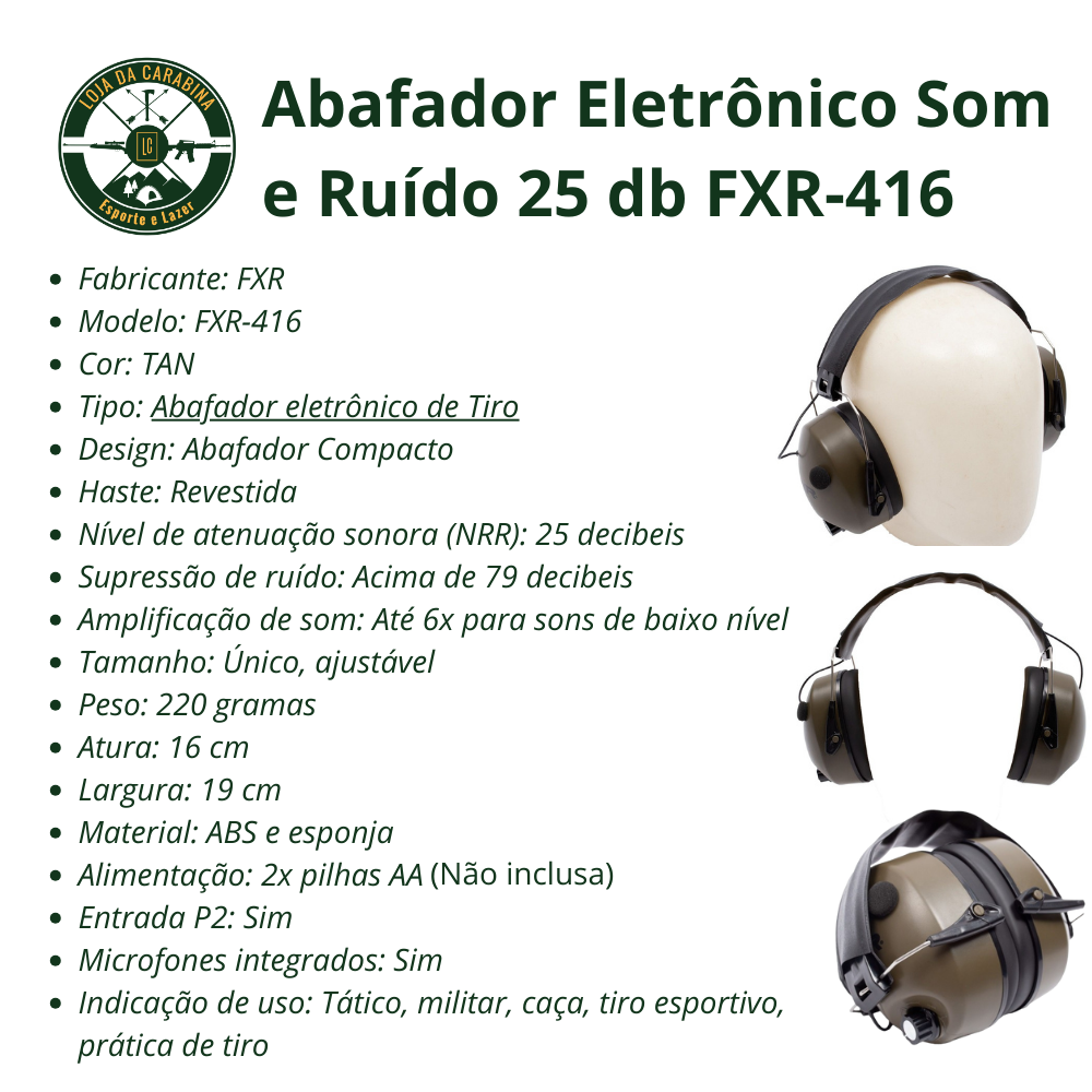 + Abafador Eletrônico Som e Ruído 25 db FXR Tan