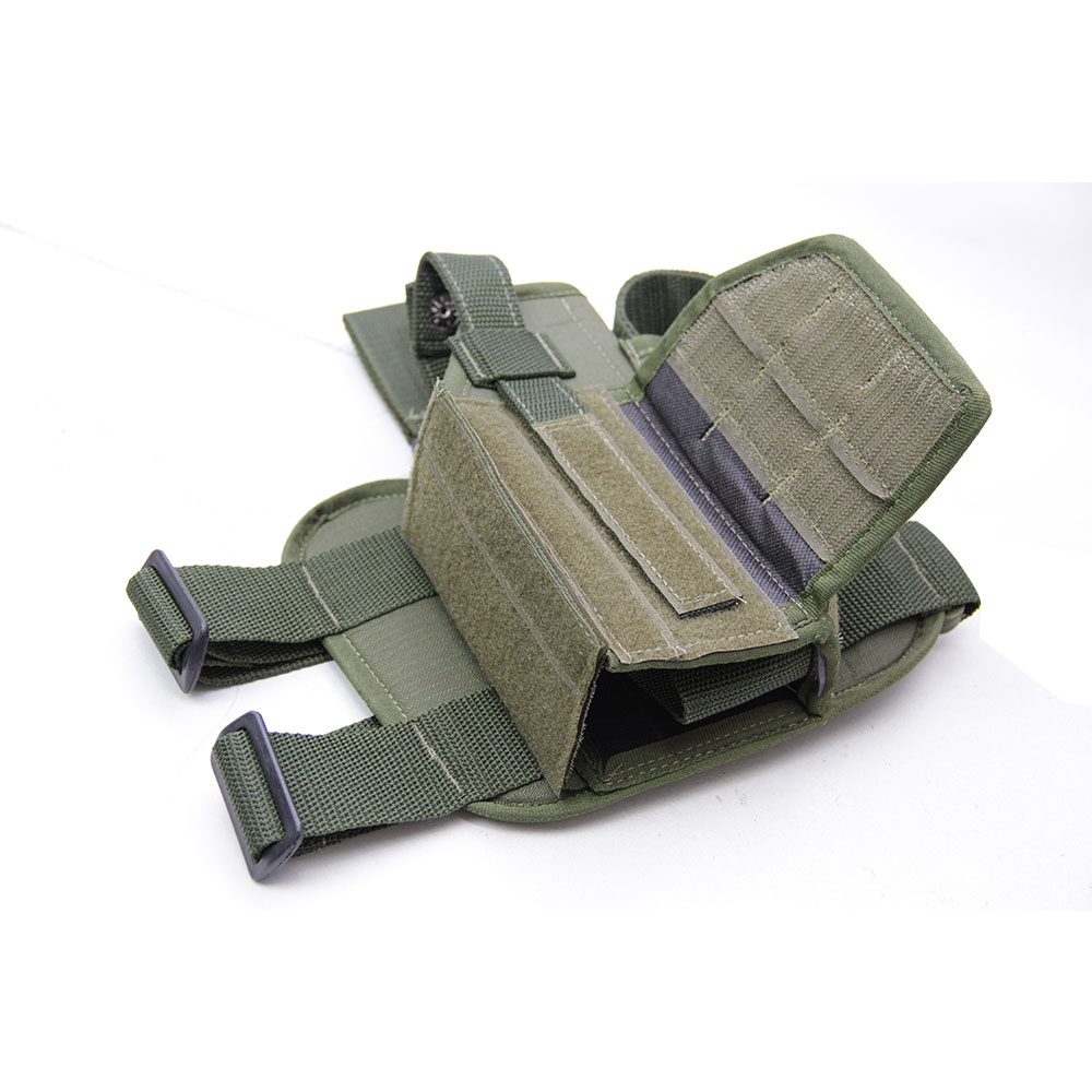 Coldre Modular com grande compatibilidade de pistolas, plataforma para perna e alça para prender no cinto.