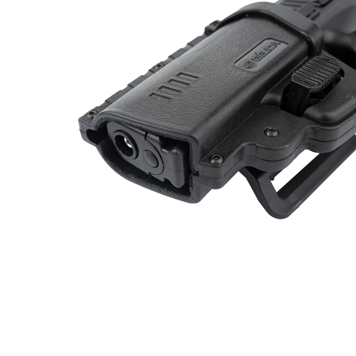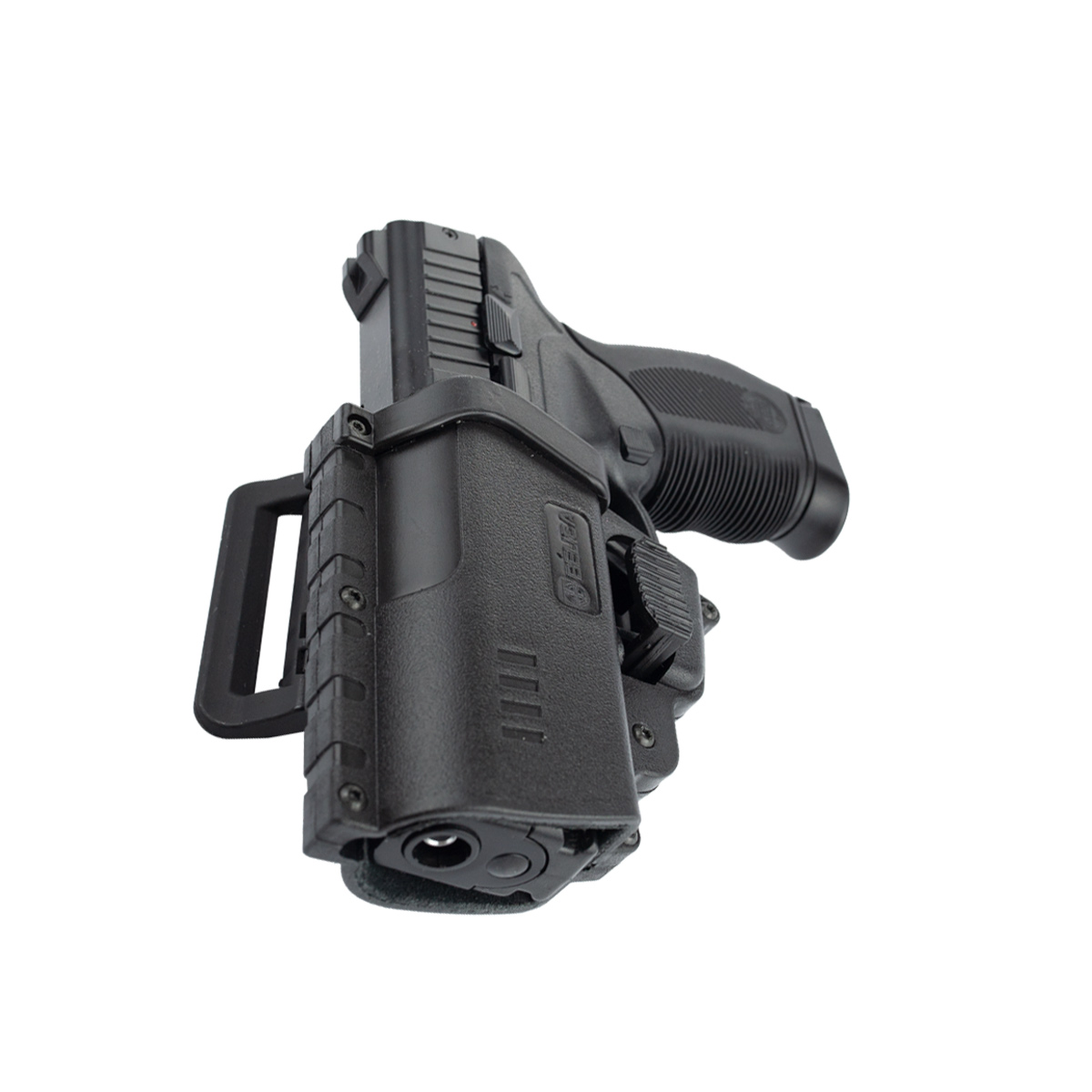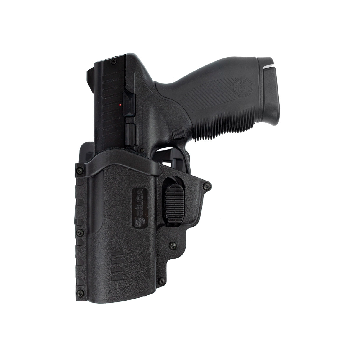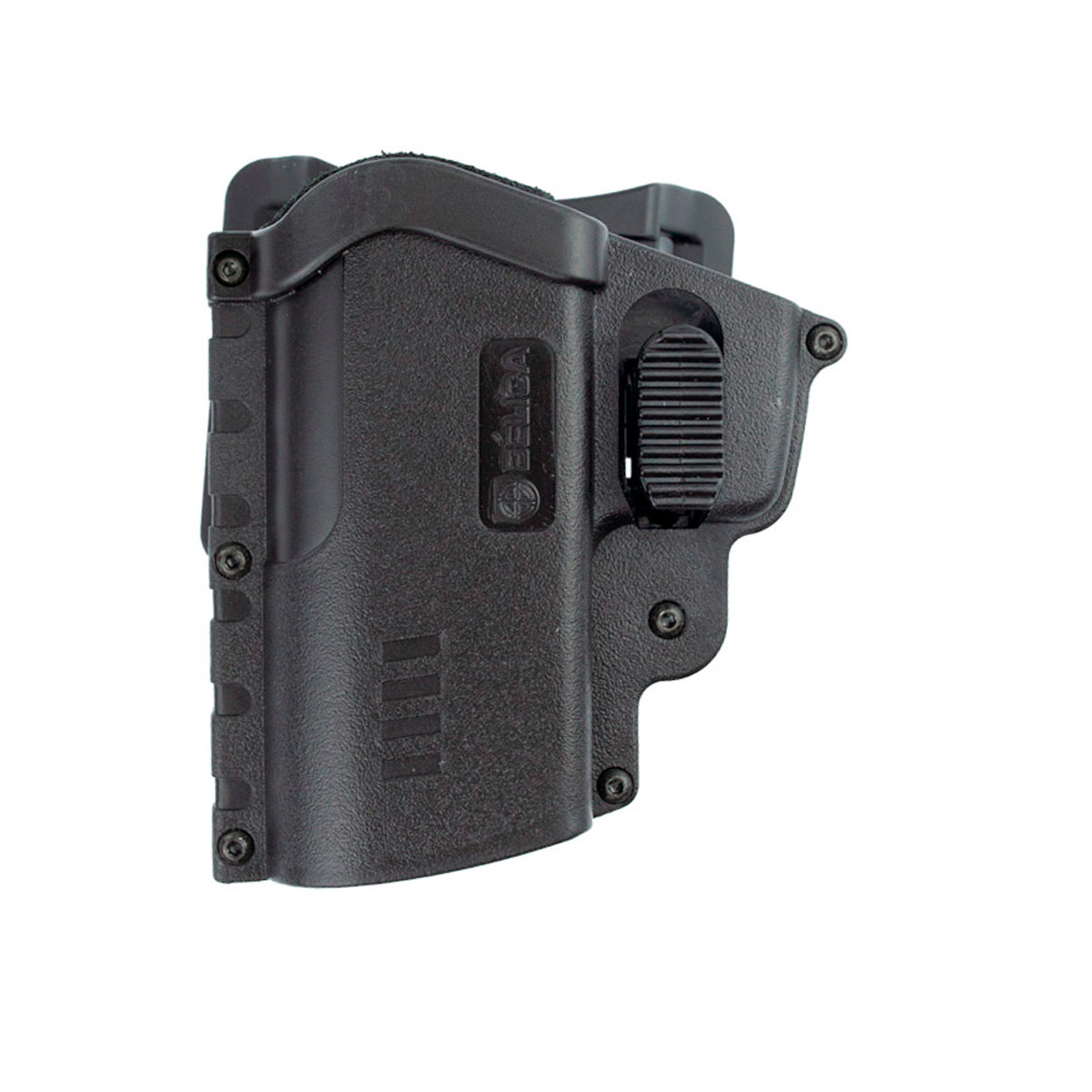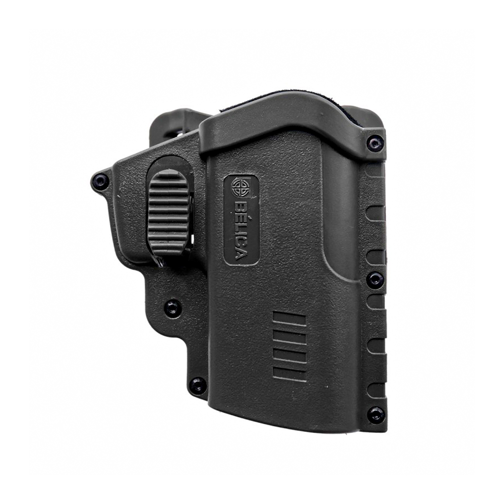 Coldre para Pistola, rígido da Bélica, fabricado em polímero de alta densidade com adaptador de cintura com passador de cinto.