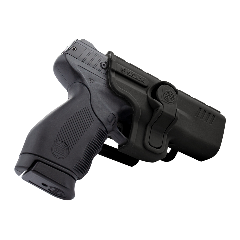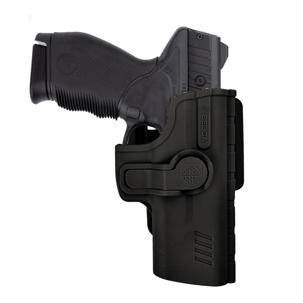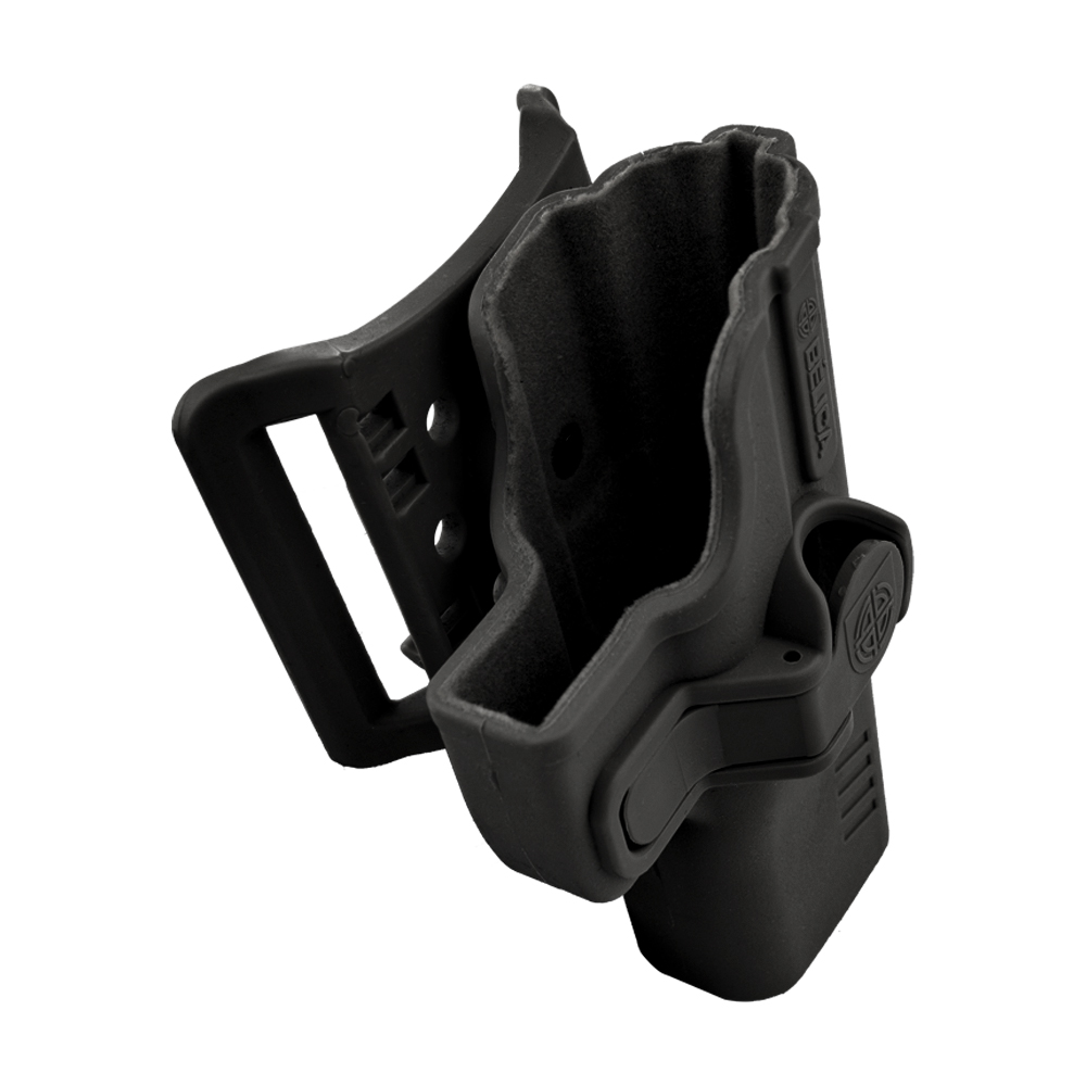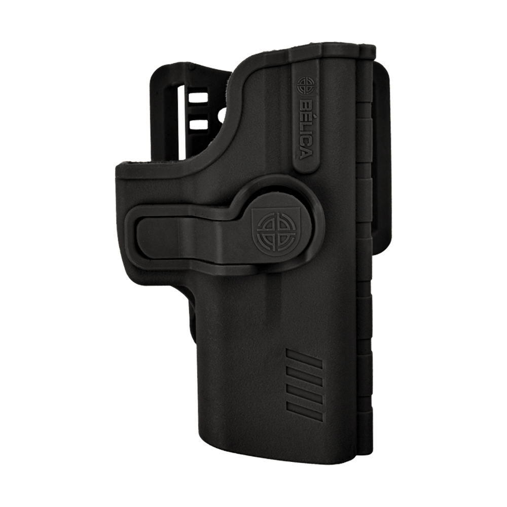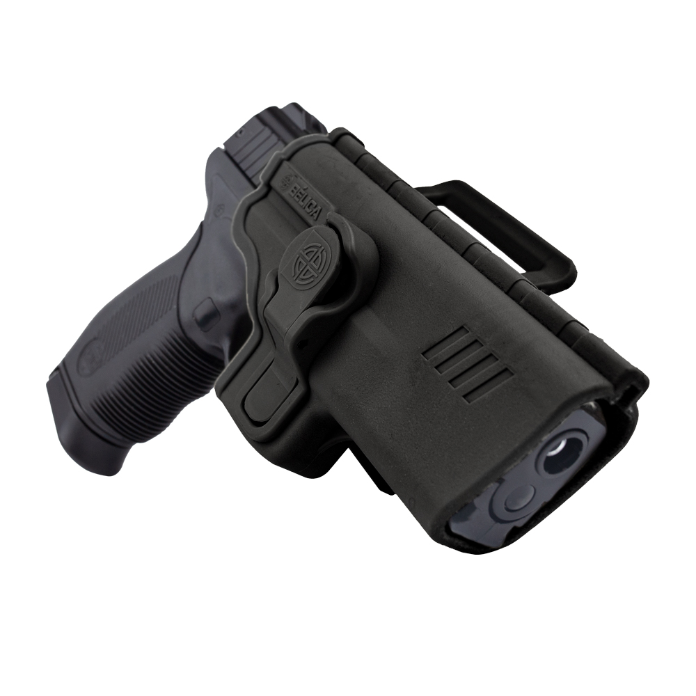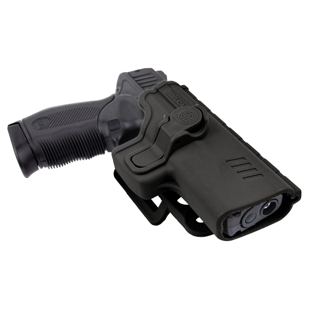 Coldre Bélica SR1 Pro, fabricado em polímero de alta resistência, compatível com pistolas Taurus, Beretta 75 e também alguns modelos Imbel, com passador de cinto até 5.5mm.