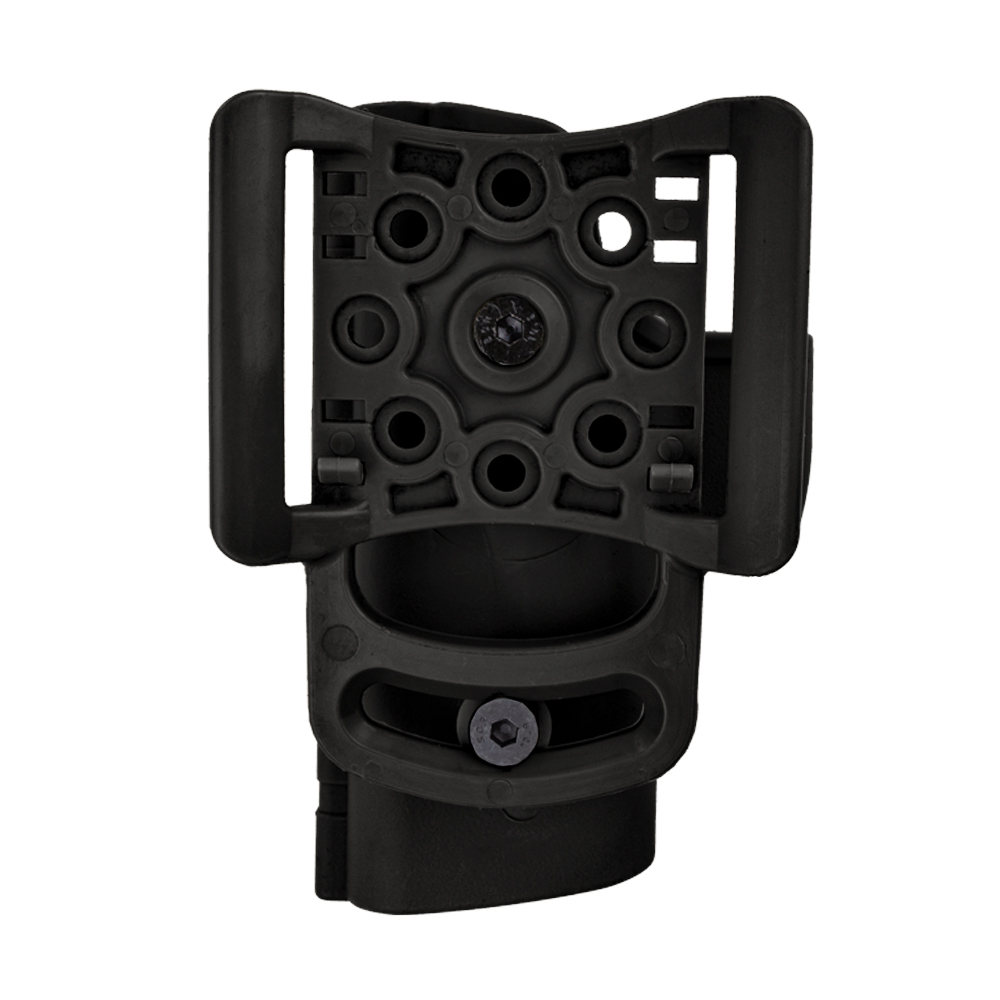 Catraca é rotativa o que facilita o manuseio do equipamento, podendo ajustar o ângulo da arma. Também é compatível com outras bases, como de perna.