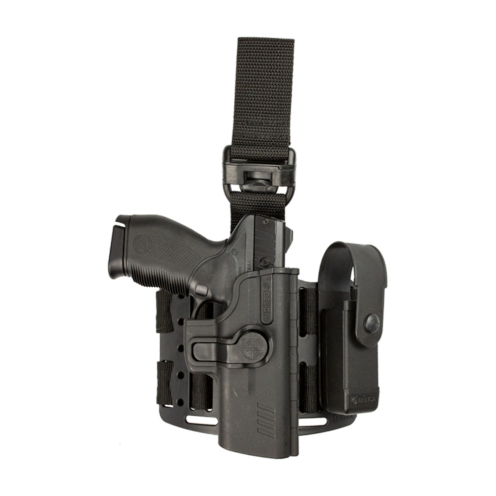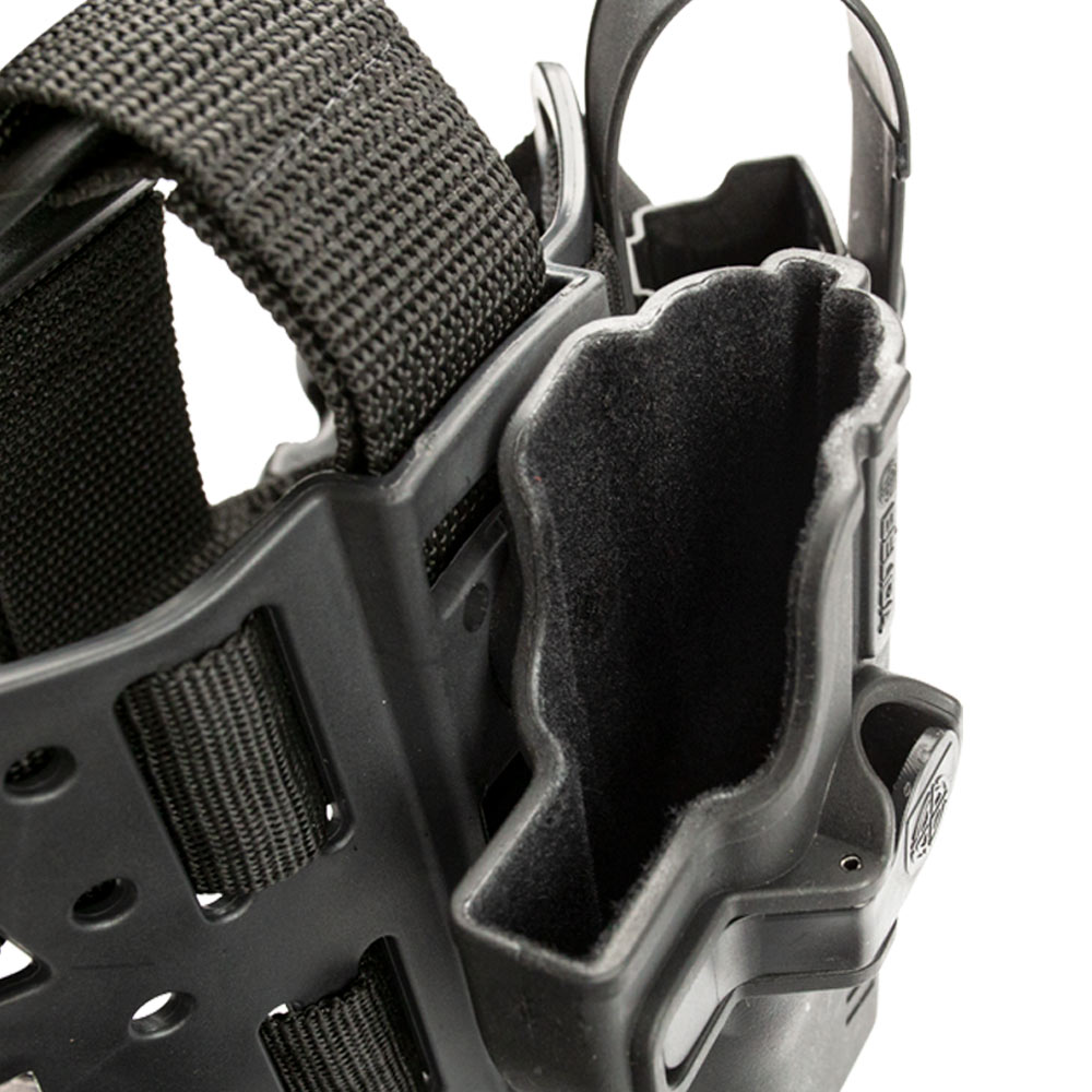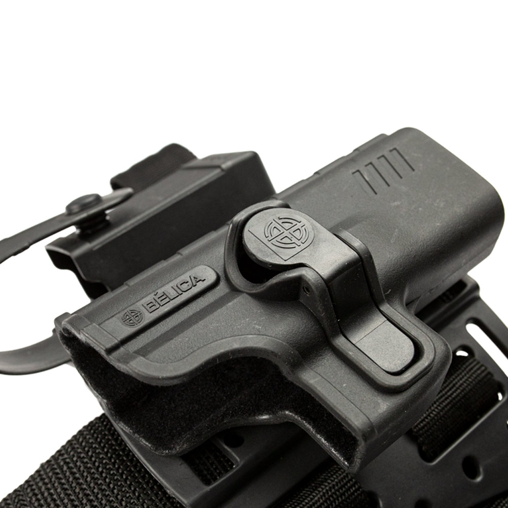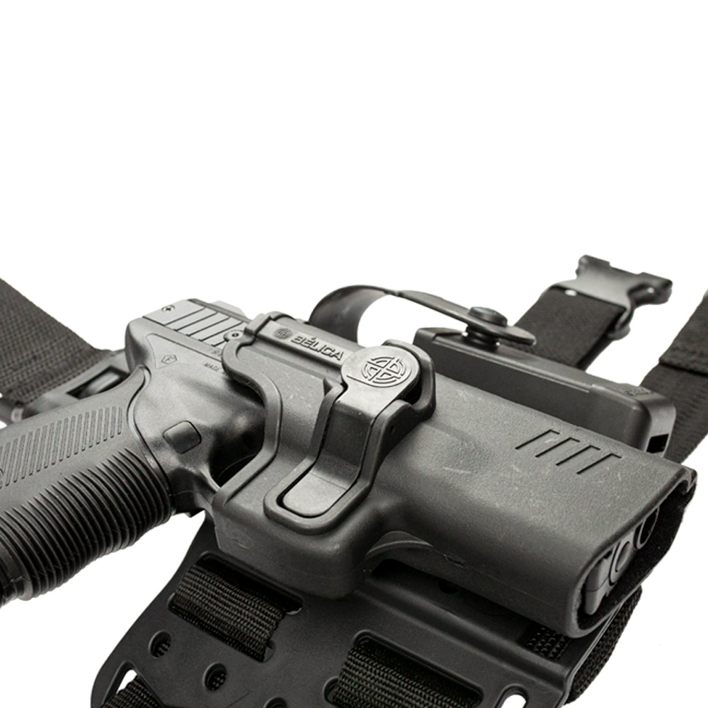 Coldre rígido para perna, modelo Pro SR2 Bélica, fabricado em polímero de alta resistência com plataforma de perna super confortável.
