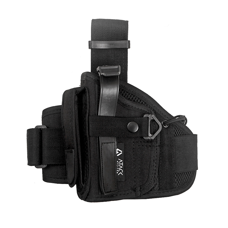 Coldre de Pistola para Perna, fabricado pela Atack Militar em nylon na cor preta. Alta qualidade e conforto para transportar a sua Pistola de forma segura e prática.