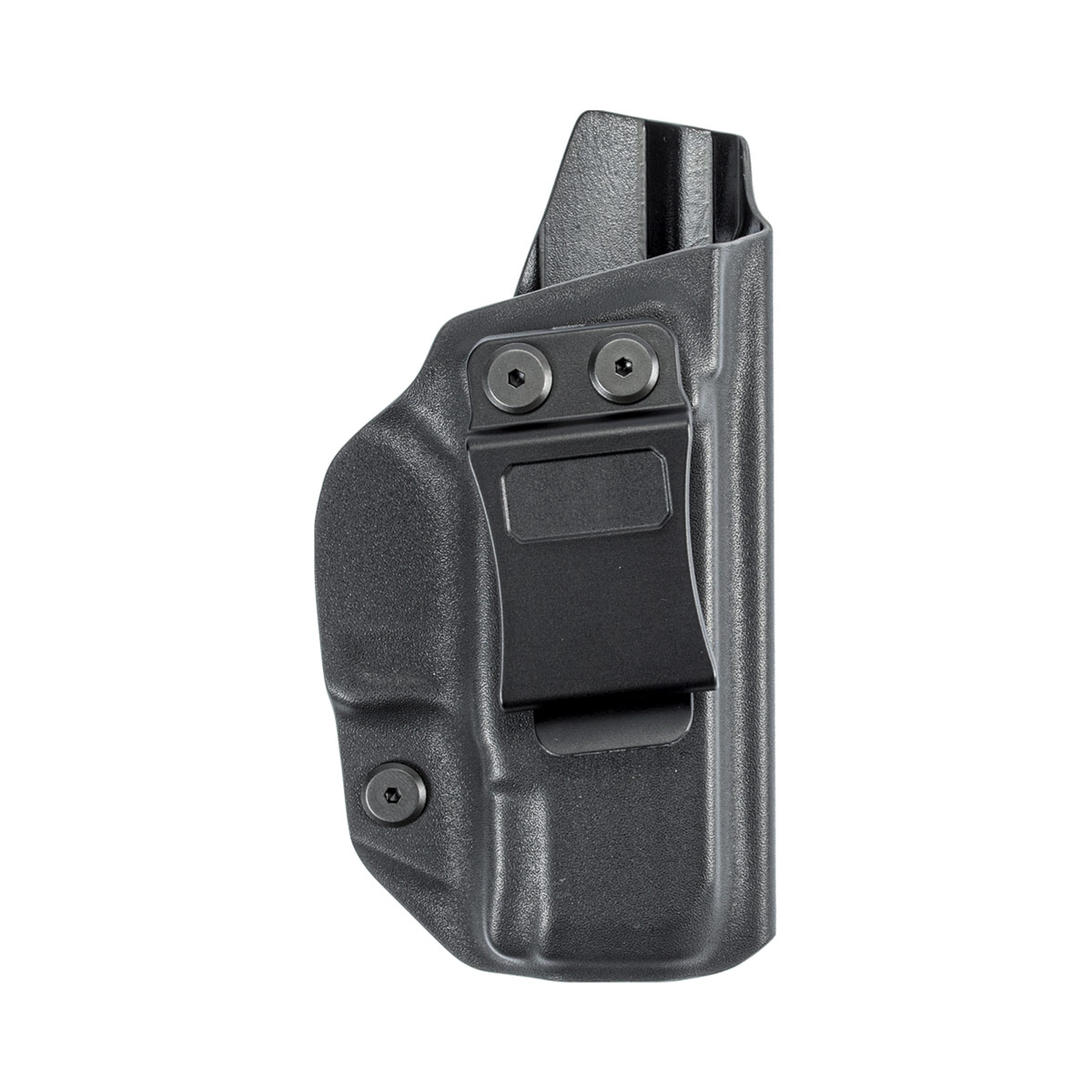 Coldre de uso interno (IWB) fabricado em Kydex que é um termoplástico extremamente resistente que não deforma, sendo seguro, durável e leve.