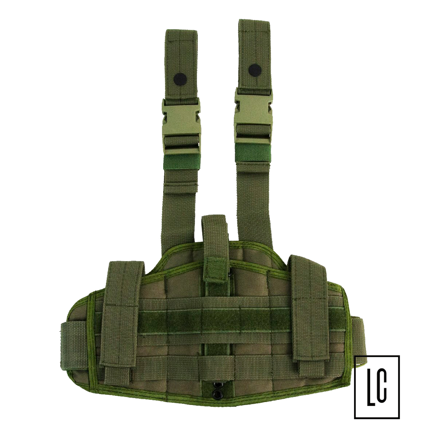 Coldre Perna Phanton Gear Verde Oliva. Confeccionado em nylon, velcro e fitas de poliamida, possui camada interna almofadada para maior segurança da arma.