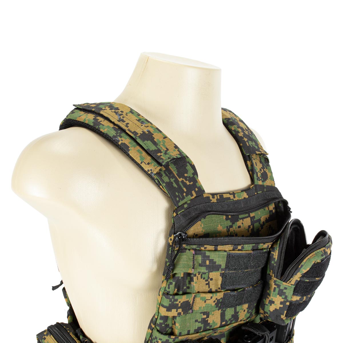 Possui sistema modular (Molle) para que o jogador possa configurar seu colete da melhor forma para o jogo.