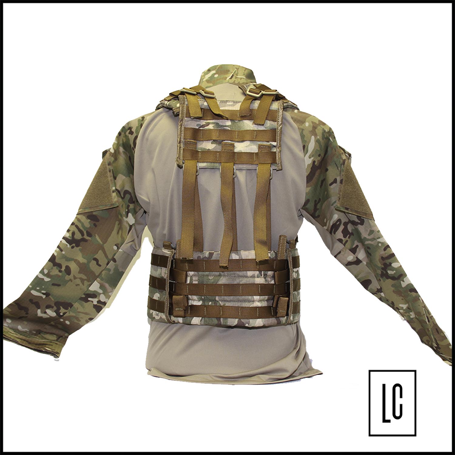 Colete no estilo suspensório, compacto, com sistema molle, proporcionando a possibilidade de acoplar bolsos que possuam esta caracteristica.