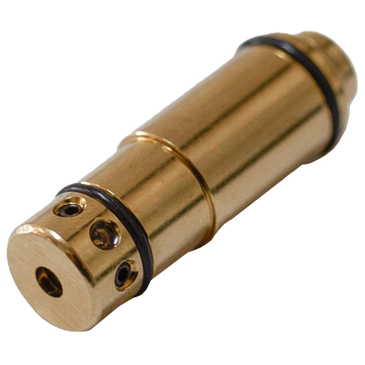 Fabricado em latão, esse colimador é uma cápsula que imita as dimensões de uma munição real. Em seu interior, possui um emissor de laser que projeta o feixe de luz para que você possa avaliar sua precisão de tiro.
