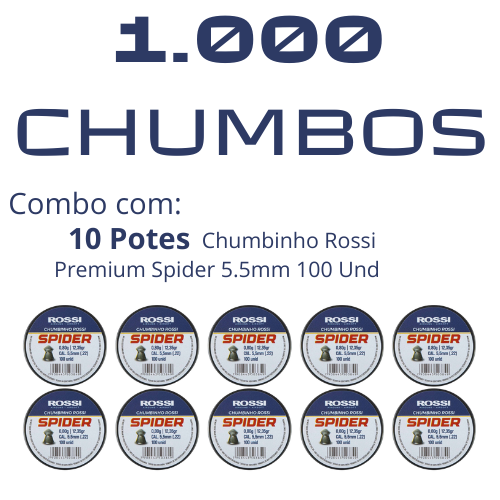 10 x Pote com 100 chumbinhos Rossi Spider 5.5mm (.22)
