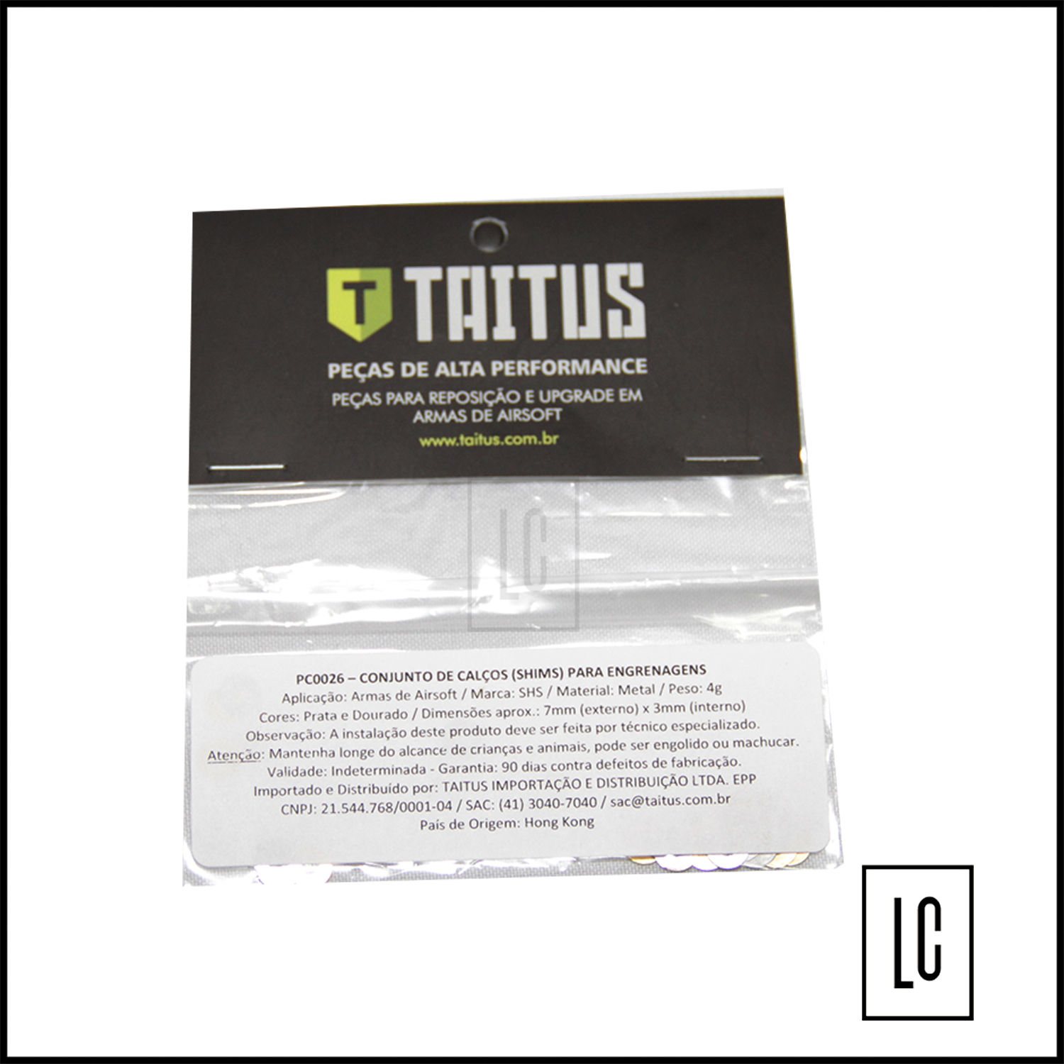 Conjunto completo de shimns (calços) para regulagem perfeita do posicionamento das engrenagens.