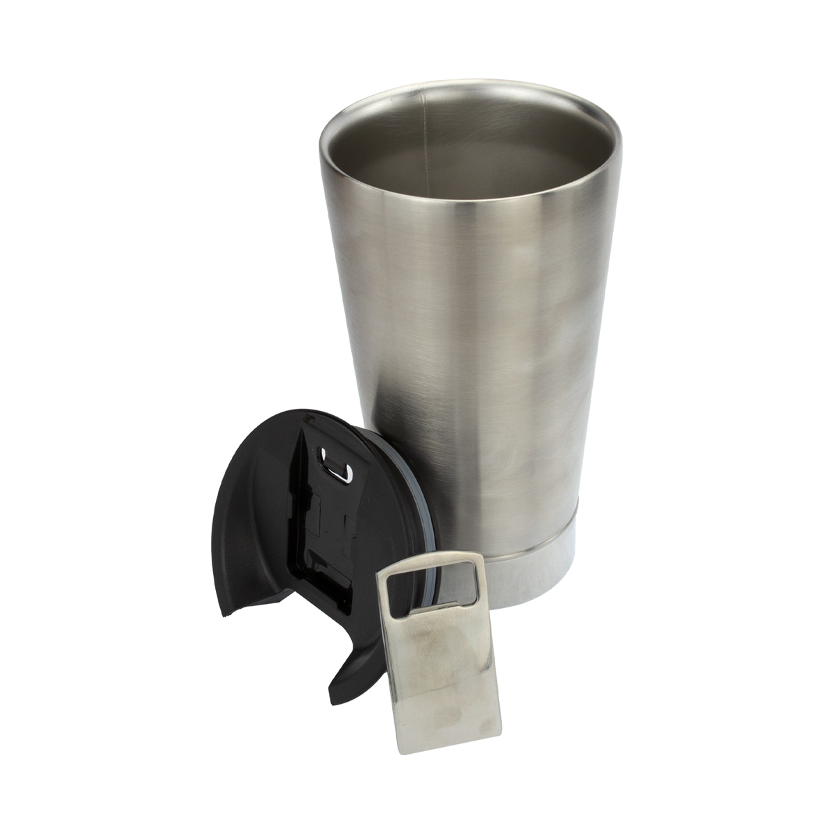 Copo Otelo Térmico com Tampa + Abridor Prata 473ml - Características: