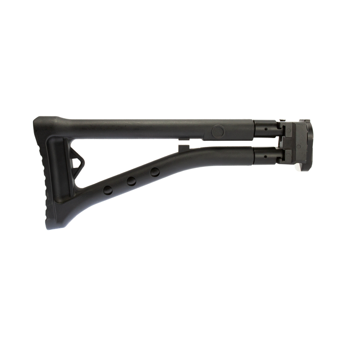 Coronha rebatível para Rifle Airsoft M4 G&G fabricado em polímero na cor preta.