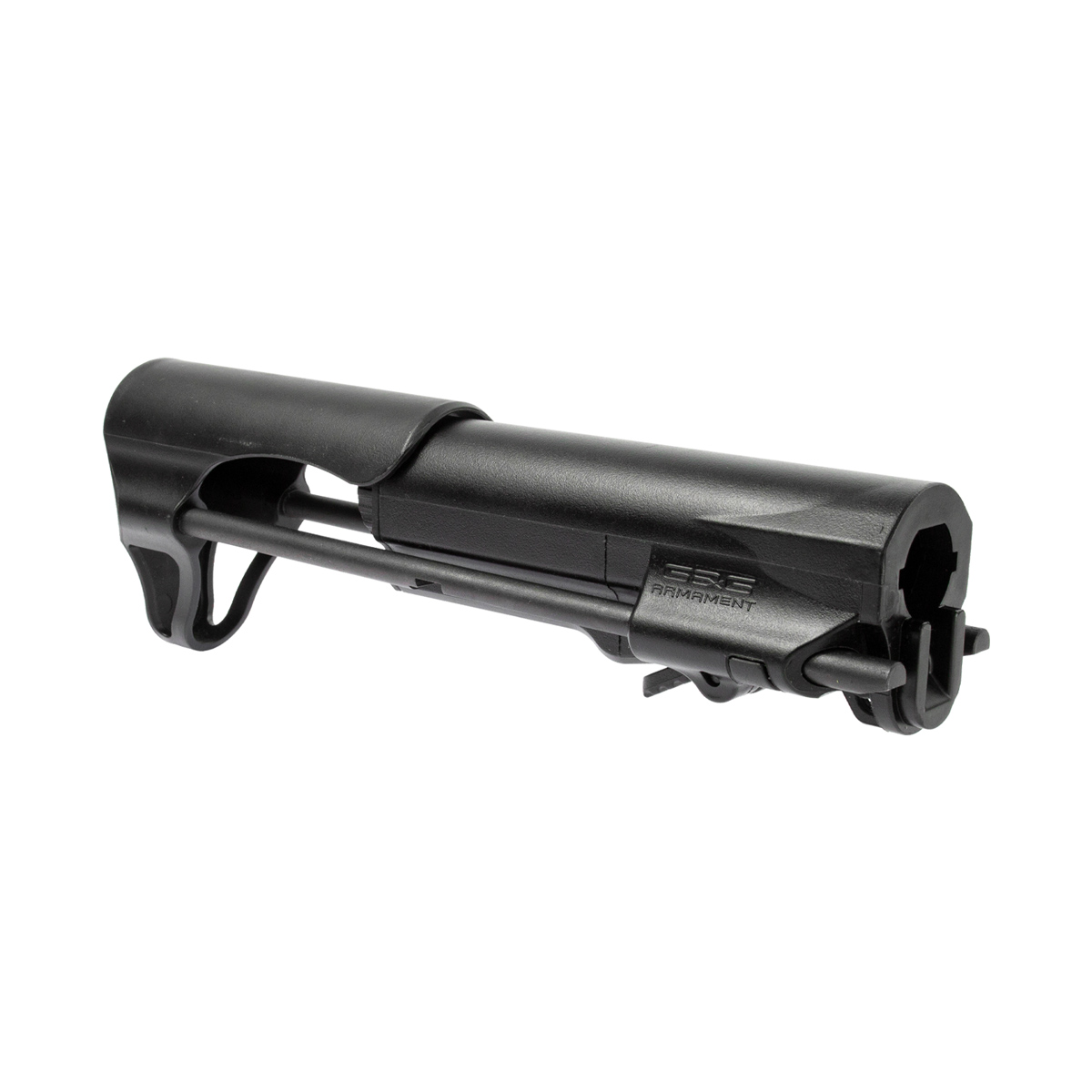 Coronha retrátil fabricada pela G&G na cor preta é uma peça de reposição compatível com os modelos de Rifle Airsoft ARP9 e ARP556 da G&G.