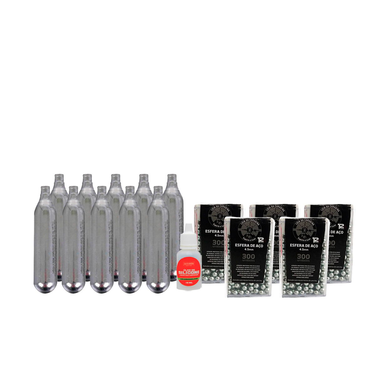 ESFERA DE AÇO 4.5MM + CO2 LOJADACARABINA + ÓLEO