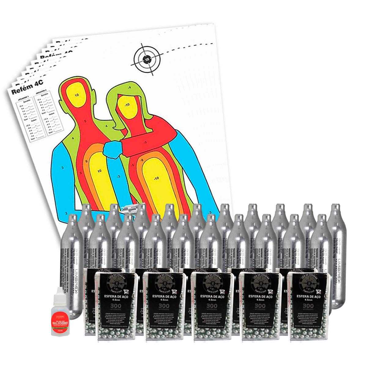 ESFERA DE AÇO 4.5 + CO2 UMAREX + ALVO + ÓLEO