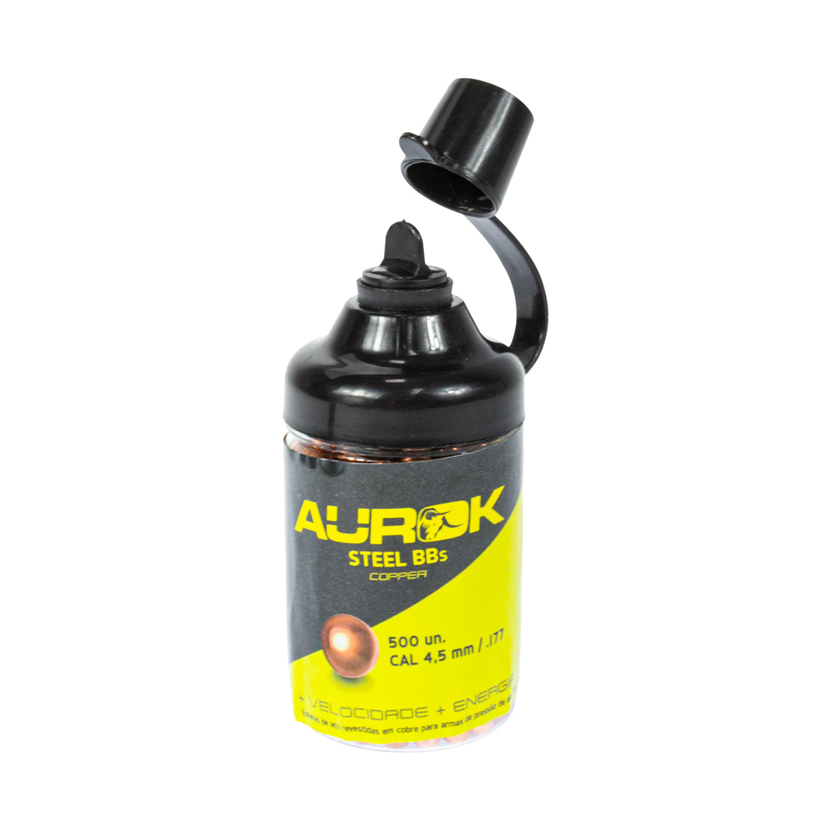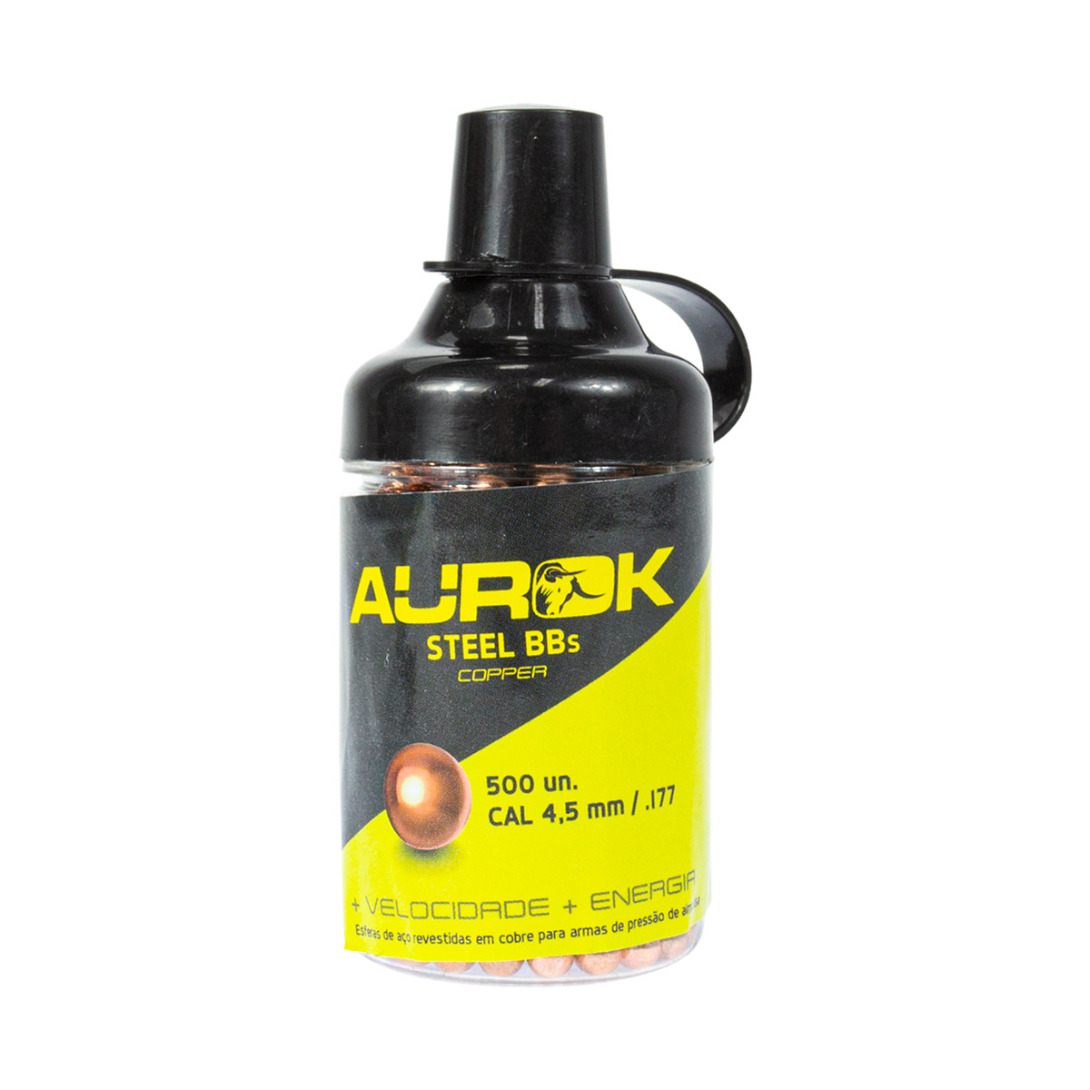 1x Pote com 500 esferas de aço cobreadas para calibre 4.5 mm (.177)