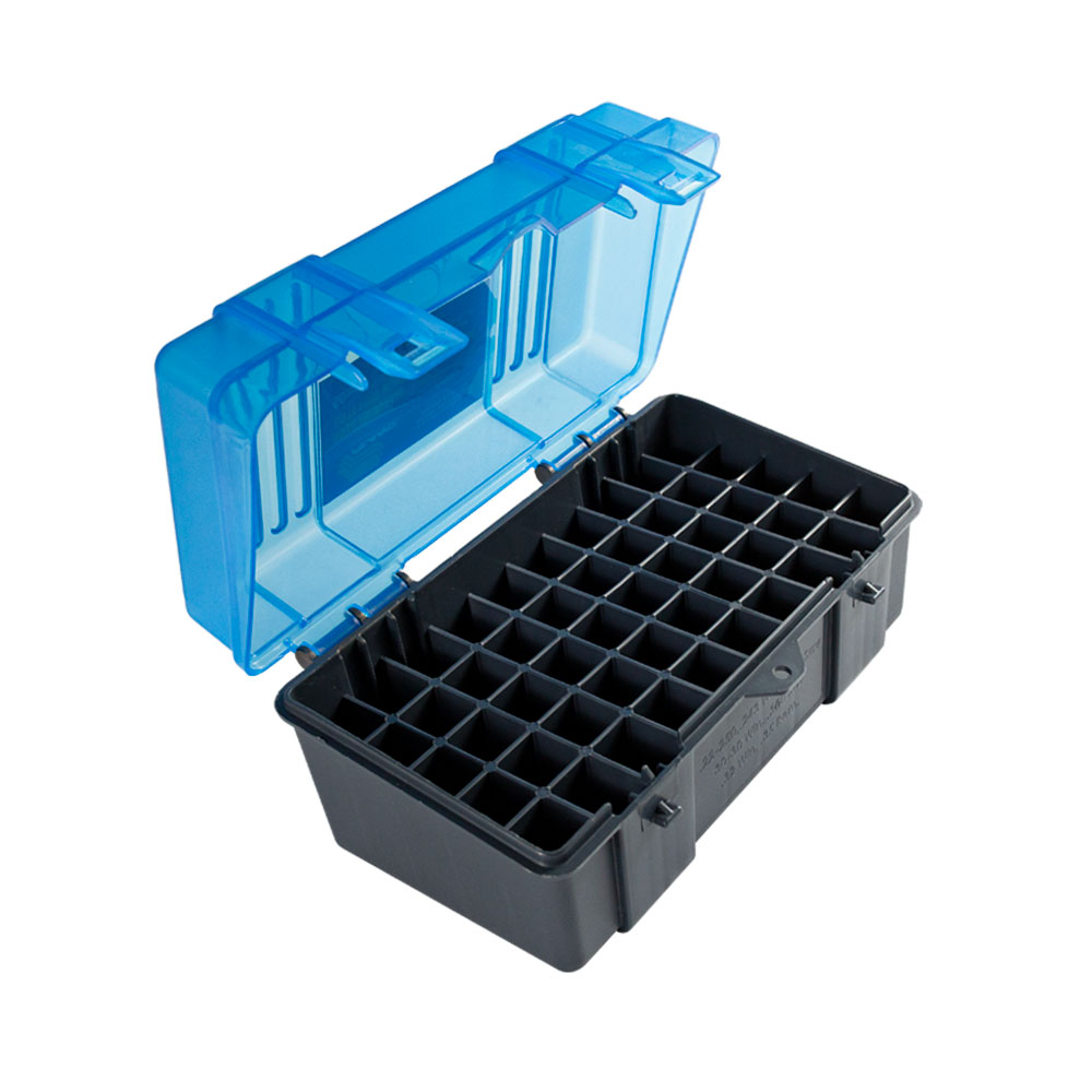 Caixa de munições Plano fabricada em polímero com alta resistência e durabilidade. Possui 50 compartimentos para inserir os cartuchos individualmente.