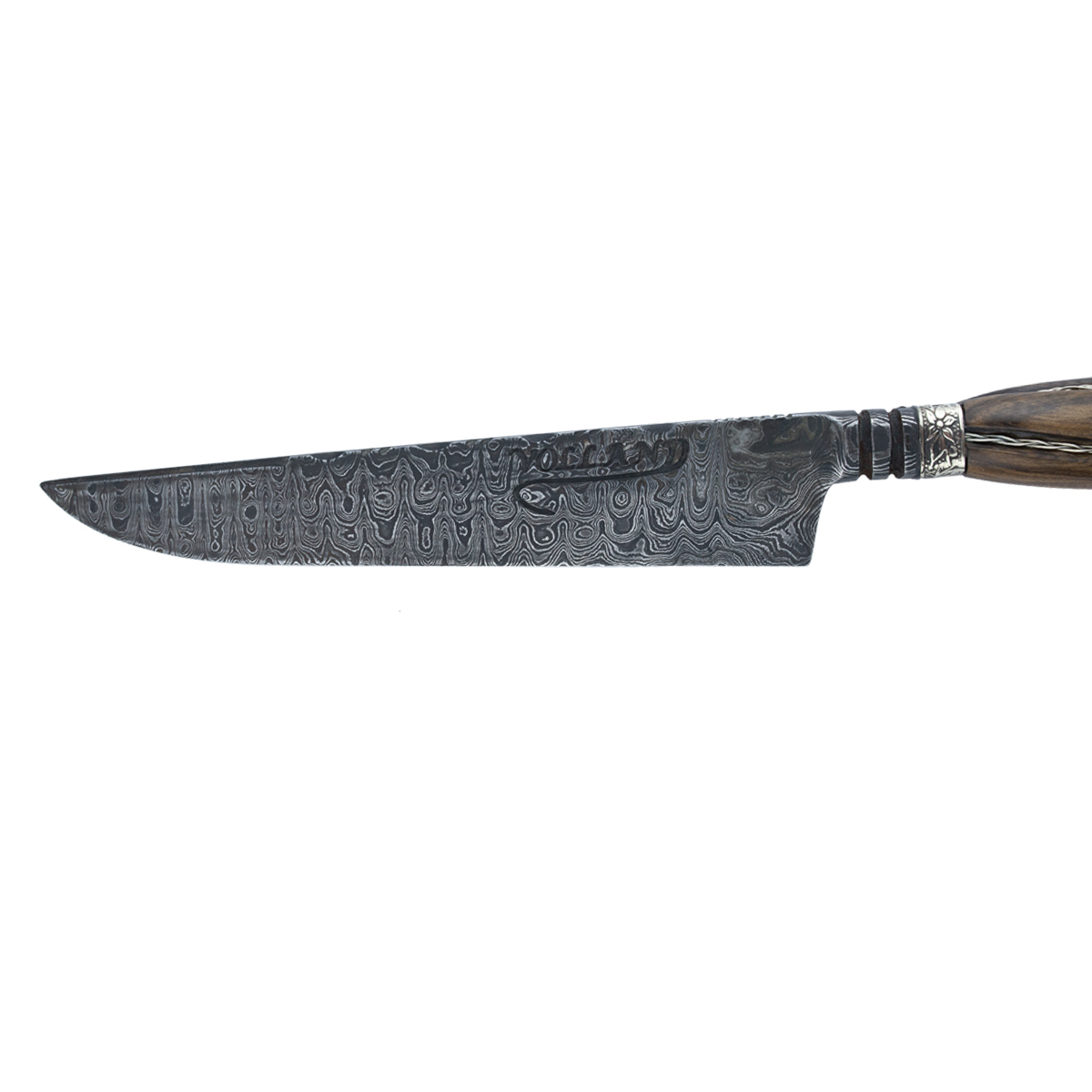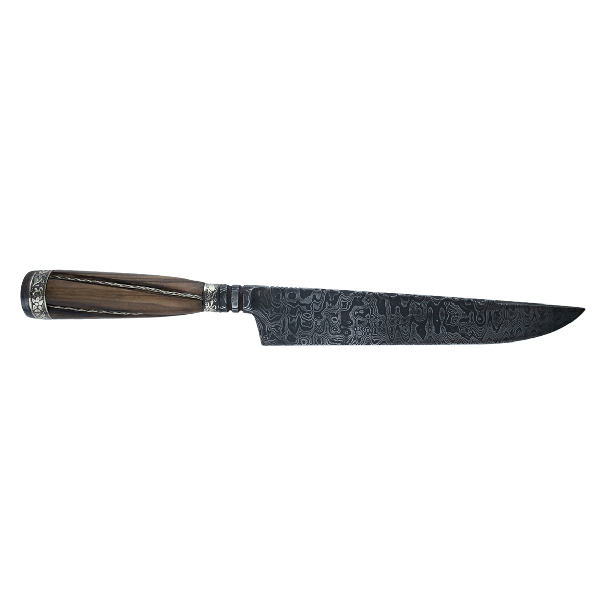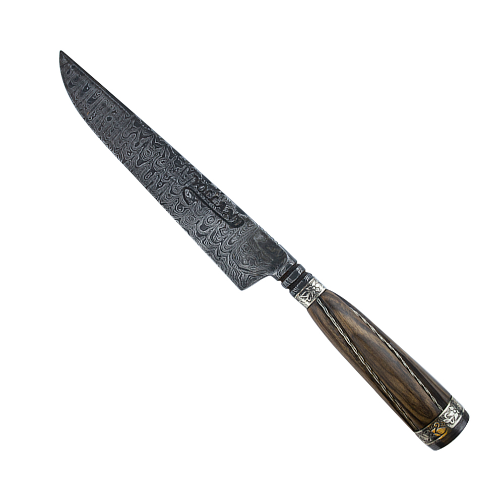 Faca em Aço Damasco com Cabo Retovado 8 polegadas. Fabricação 100% nacional em 320 camadas!