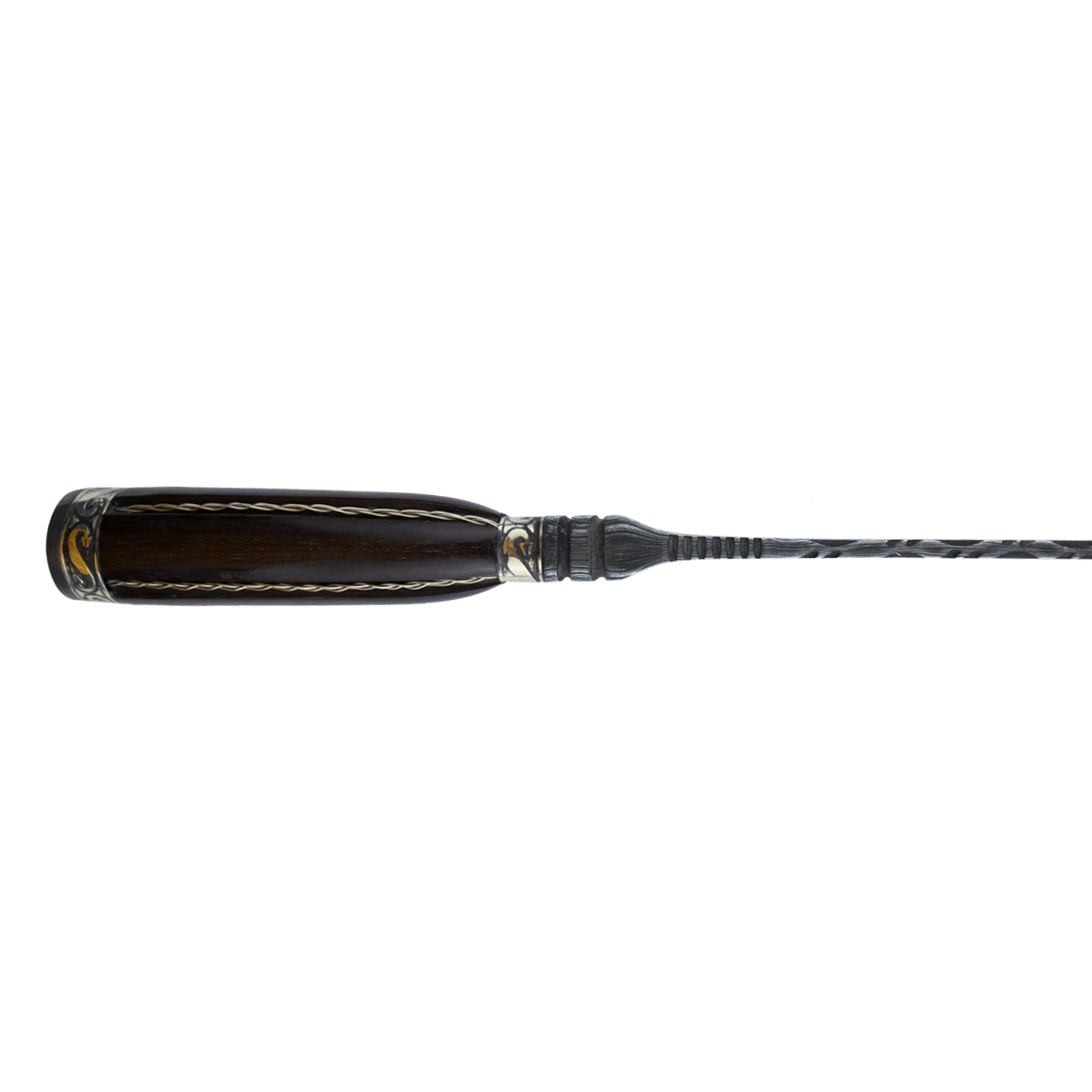 Possui cabo retovado jacarandá e com detalhes em alpaca nas duas pontas, que consiste em uma liga composta de cobre, níquel e zinco , também conhecida como prata alemã devido ao seu brilho e coloração.