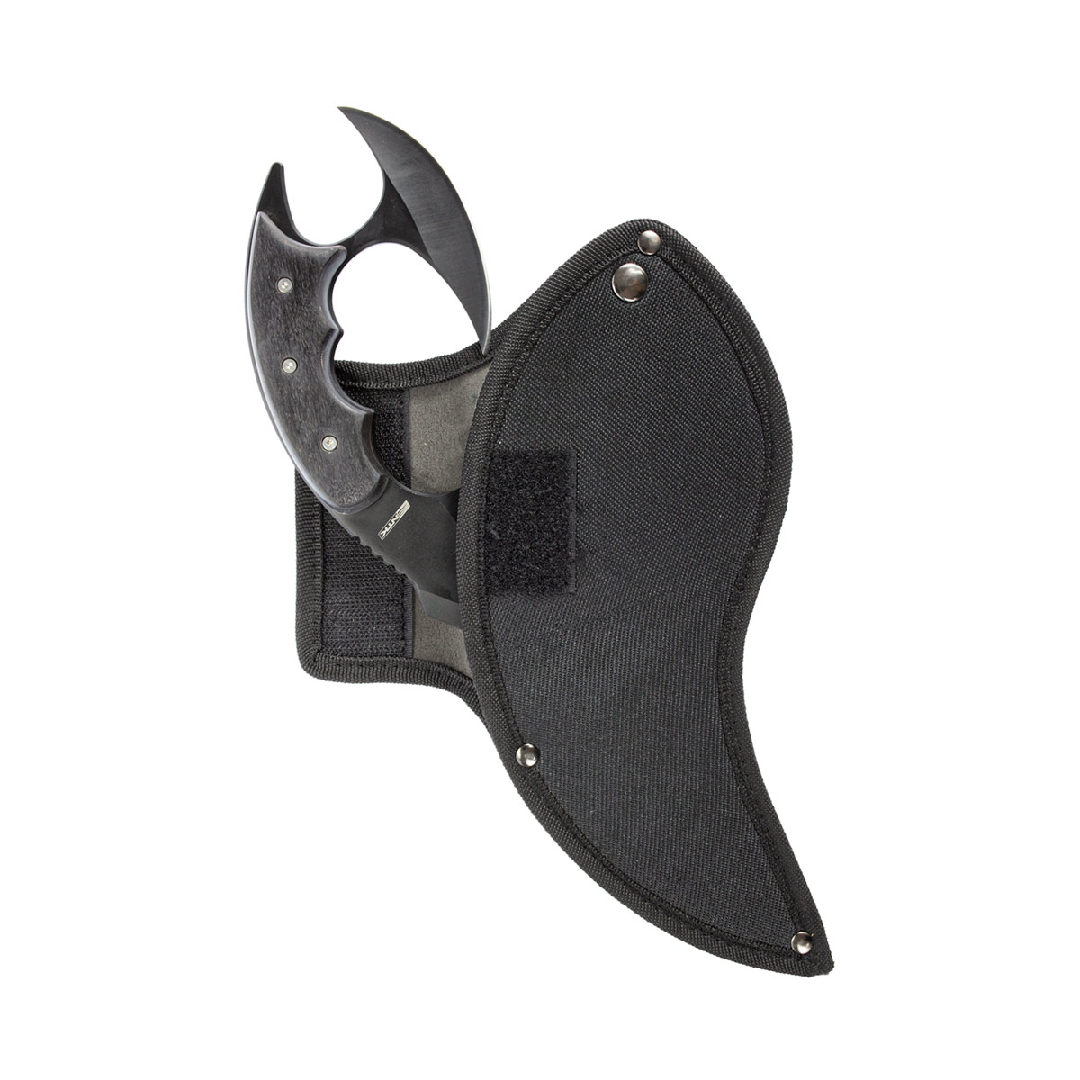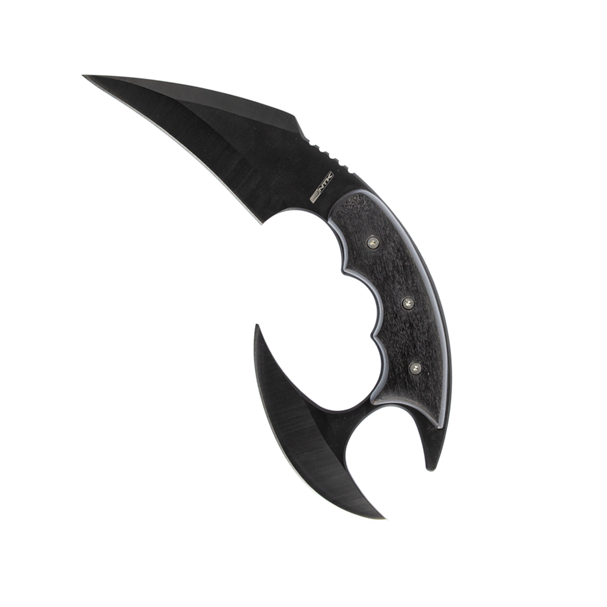 A faca Drakat tem um design único e muito bonito! Seu cabo em madeira dá a ela um visual robusto e rústico junto com a sua lâmina preta.