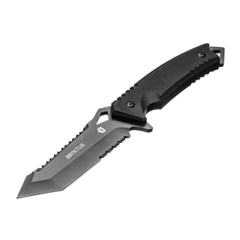 A faca Bold compõe o portfólio de facas táticas INVICTUS. Possui como diferenciais, além da lâmina em aço inoxidável 420 Full Tang, de maior resistência a impactos e maior durabilidade, pomo metálico (quebra vidro), orifício para fiel e bainha em nylon balístico 1680 D com sistema MOLLE e bolso externo. Possui também cabo de fibra de vidro G10, resistente a altas temperaturas, ao desgaste do dia a dia e à umidade.