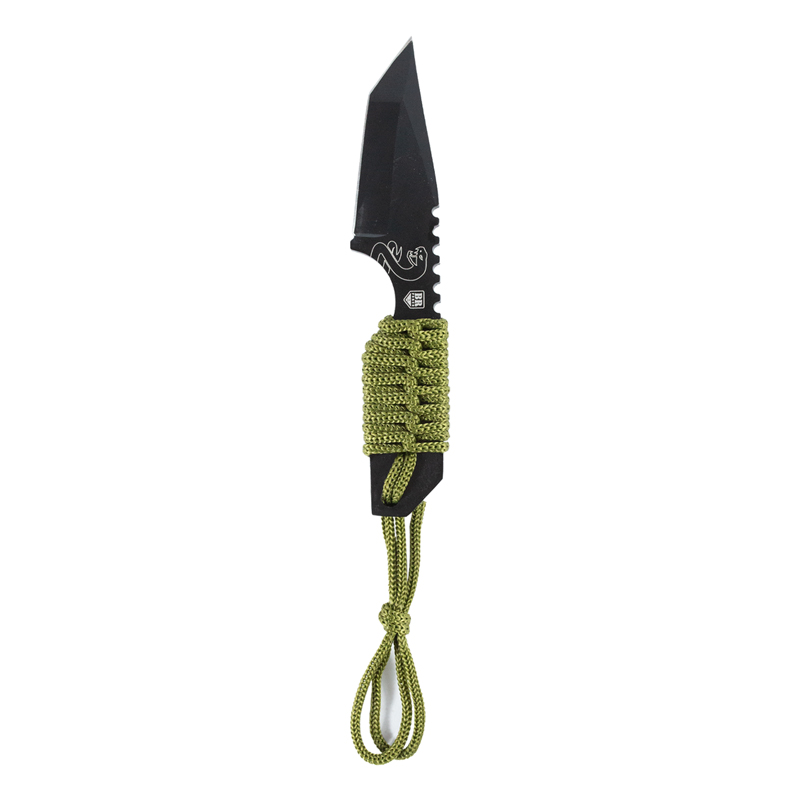 No cabo possui cordas em nylon na cor verde que deixam o visual dessa faca muito bacana.