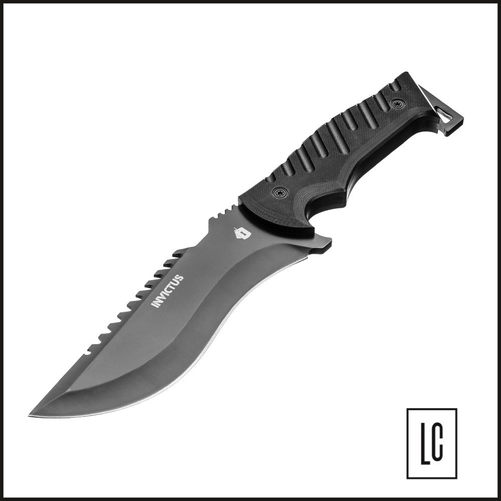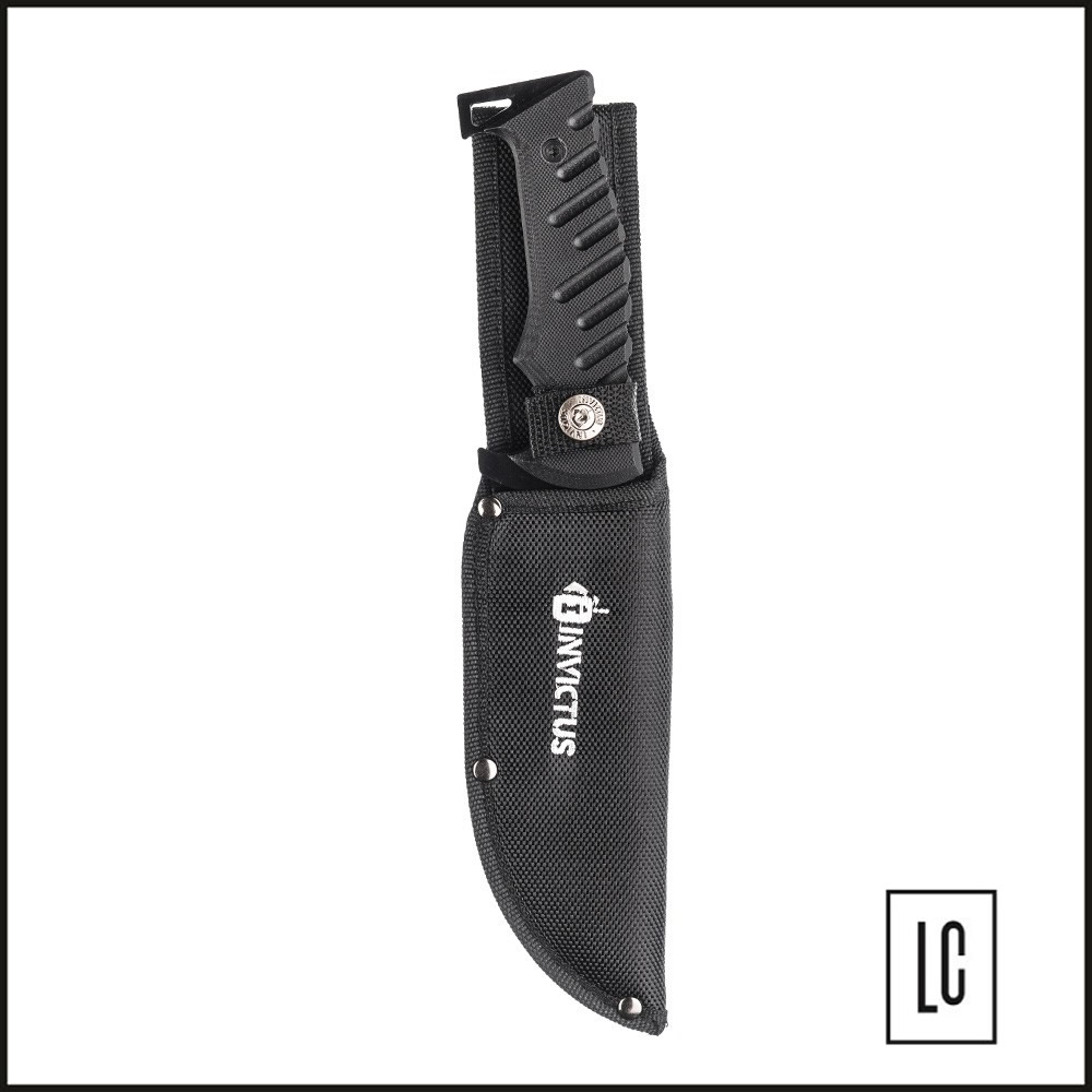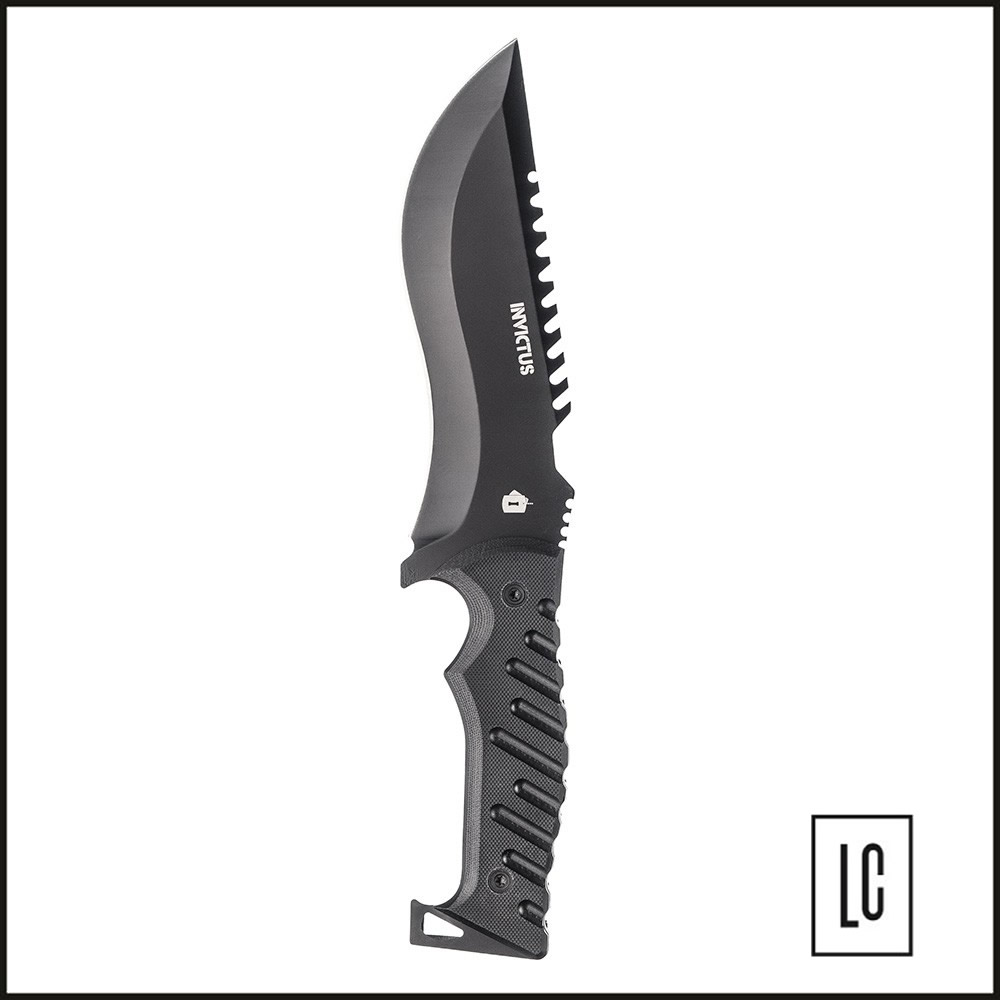 A faca Buffalo compõe o portfólio de facas táticas INVICTUS. Possui lâmina em aço inoxidável 420 Full Tang, acabamento Total Black para evitar reflexos, pomo metálico (quebra vidro), orifício para fiel, bainha em nylon balístico 1680 D e cabo de fibra de vidro G10, resistente a altas temperaturas, ao desgaste do dia a dia e à umidade.