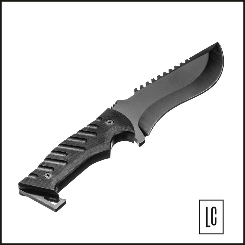 Outra característica tática da faca Buffalo é seu acabamento Total Black. Tanto a lâmina quanto o cabo G10 preto evitam reflexos e garantem um diferencial nas operações.
