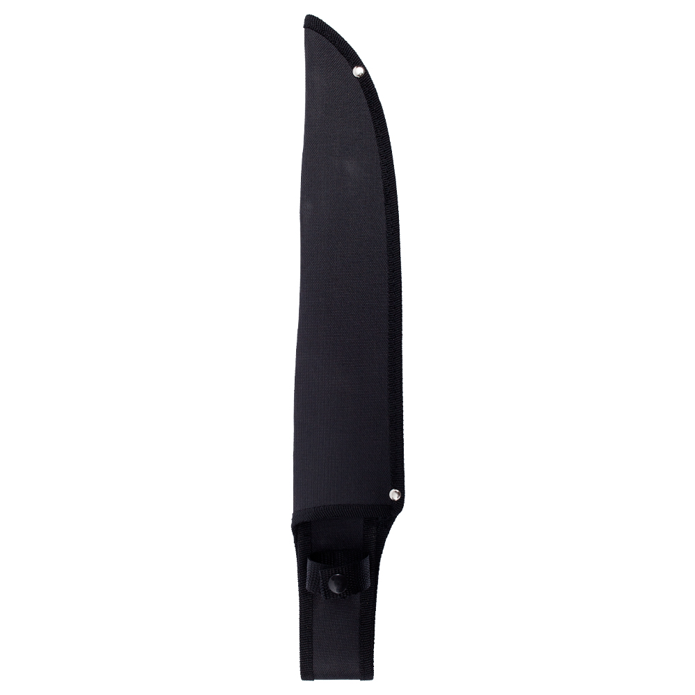 Com 30.5 cm de comprimento e 3.5 mm de espessura, esta lâmina em Aço Inox 440 é resistente à ferrugem e tem um dorso serrilhado, que pode ser usado para cortar cordas e materiais fibrosos sem estragar o fio de corte principal.