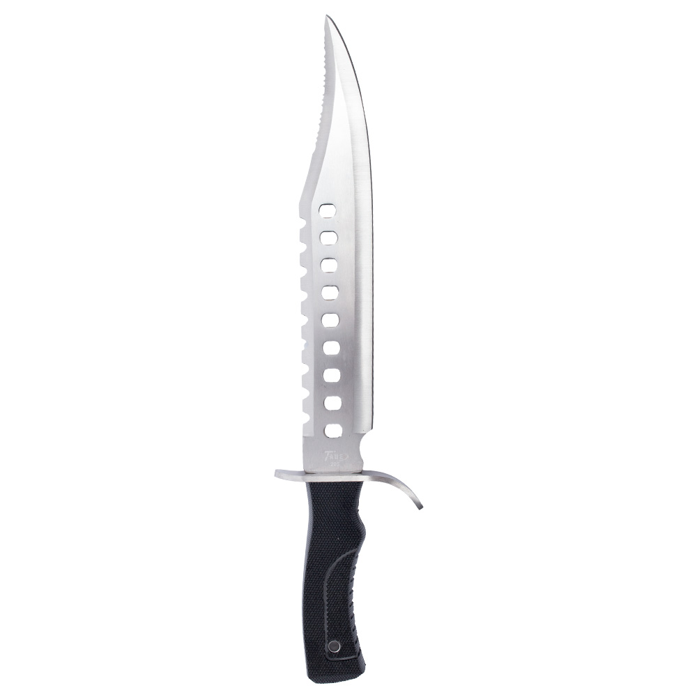 Lâmina em formato Bowie que é definido por seu tamanho grande e, principalmente, pela sua ponta, onde a ponta da faca tem uma curvatura côncava que a torna extremamente afiada e eficiente para perfurações.