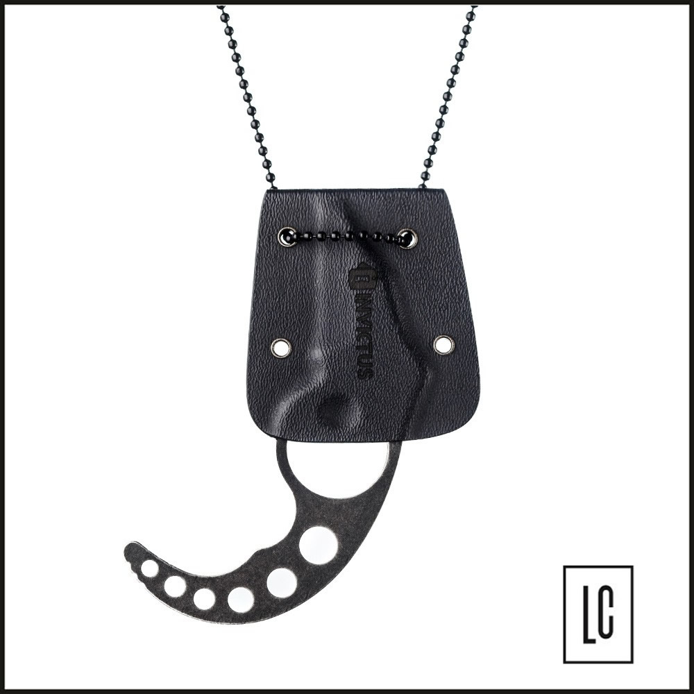 A bainha de Kydex proporciona um encaixe perfeito da faca e um saque rápido e preciso. Além disso, possui maior resistência ao desgaste provocado pelo suor e conta com corrente de pescoço.