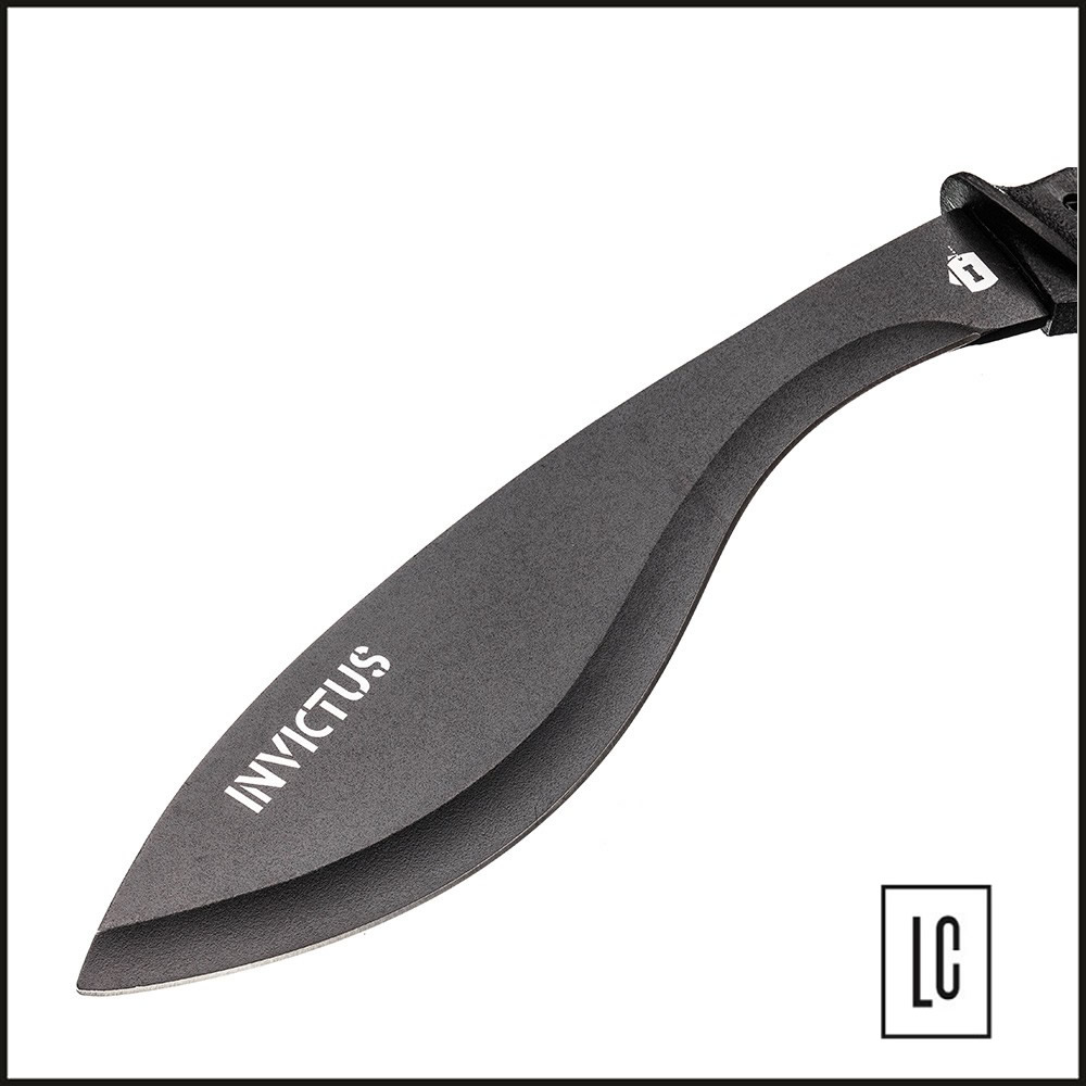 A faca Jungle compõe o portfólio de facas para uso outdoor INVICTUS. É uma faca de grande porte, com excelente empunhadura e com características fundamentais para situações sobrevivência. Possui lâmina em aço inoxidável 420, bainha em nylon balístico 1680 D, cabo em alumínio texturizado preto e kit de sobrevivência com bússola.