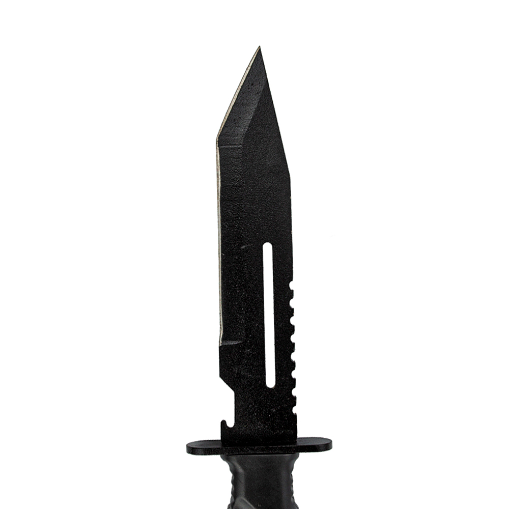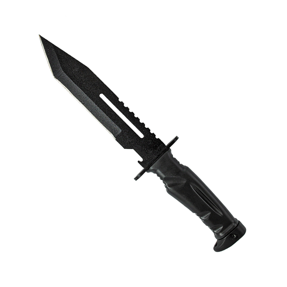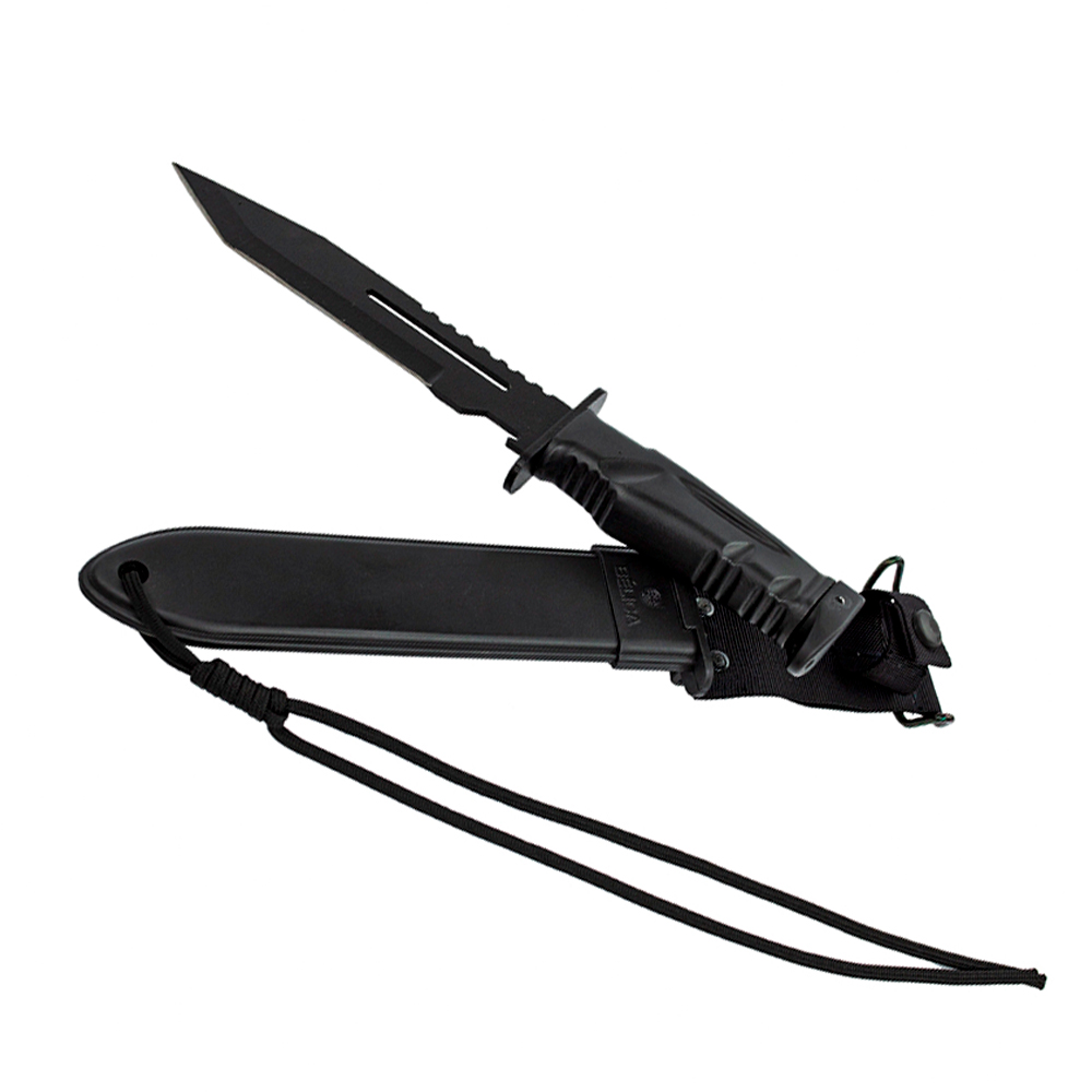 - Modelo: Commander Cor do cabo: Preto Cor da Lâmina: Preta Acabamento: texturizado Material da Lâmina: Aço 1045 Medida Lâmina: 17,5cm Largura da Lâmina: 3,5cm Espessura da Lâmina: 3mm Comprimento Cabo: 11,5cm Peso: 328g