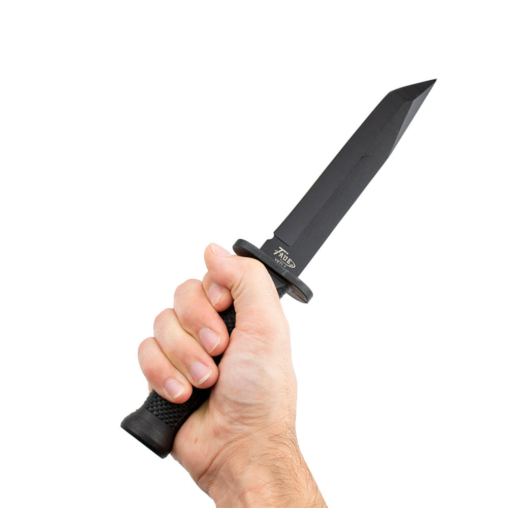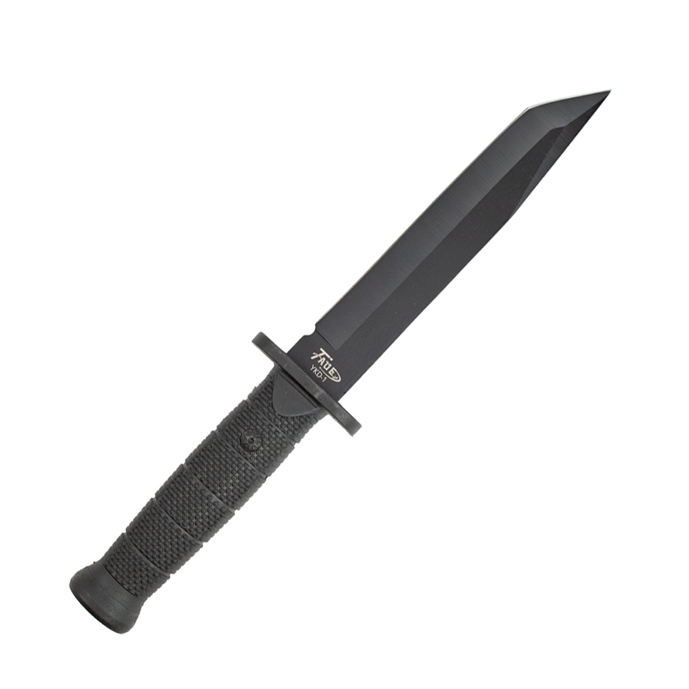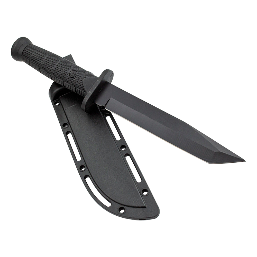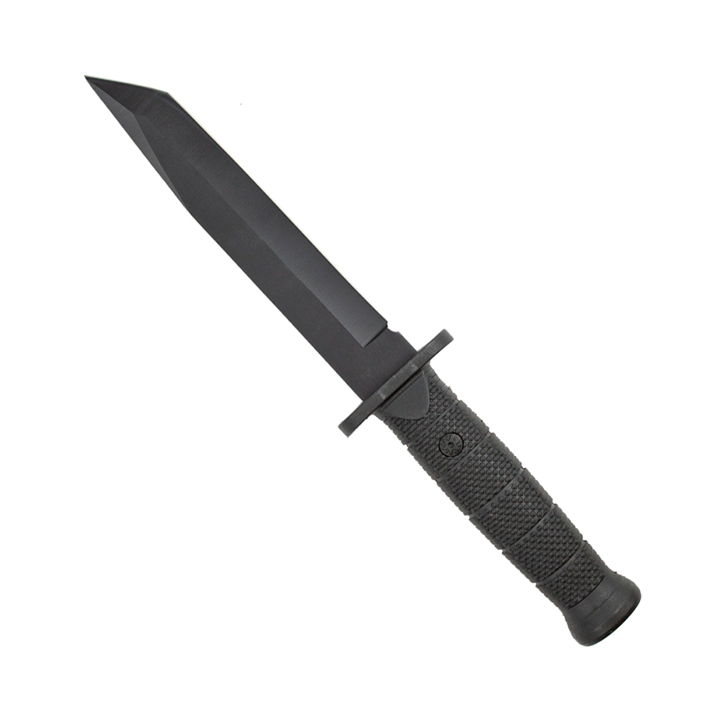 Faca Baioneta com lâmina preta de 17,5cm e 4mm de espessura, lâmina super resistente no estilo militar.