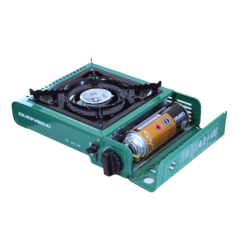 - Alimentação: Cartucho de gás campgás ou botijão tradicional